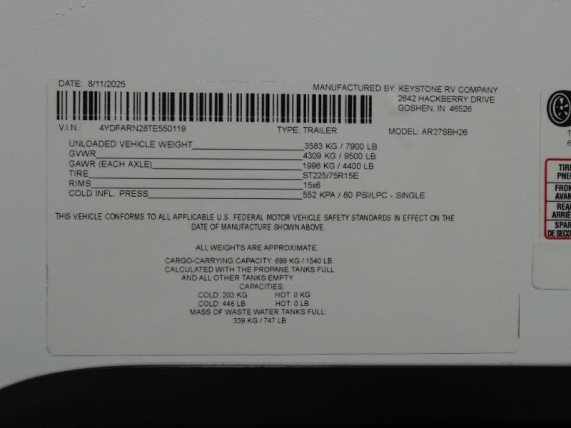 New 2026 Keystone RV Arcadia Select 27SBH Fifth Wheel