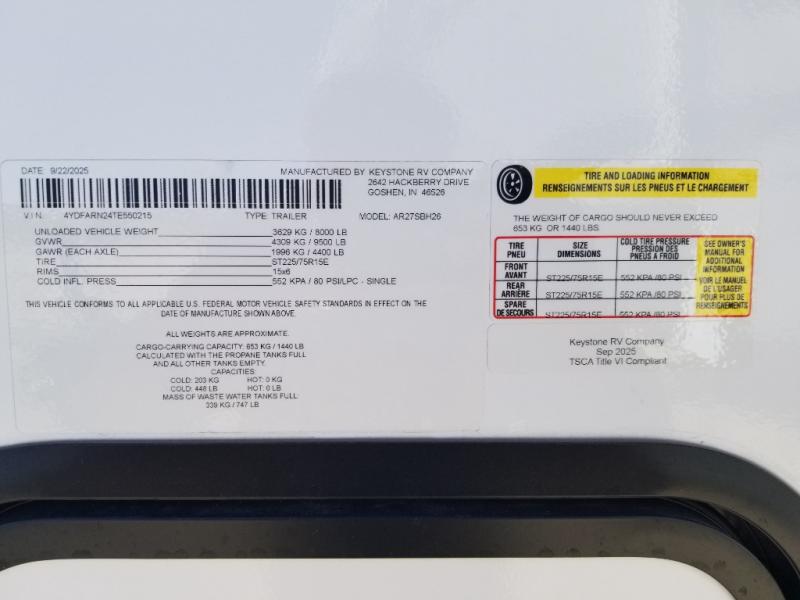 New 2026 Keystone RV Arcadia Select 27SBH Fifth Wheel