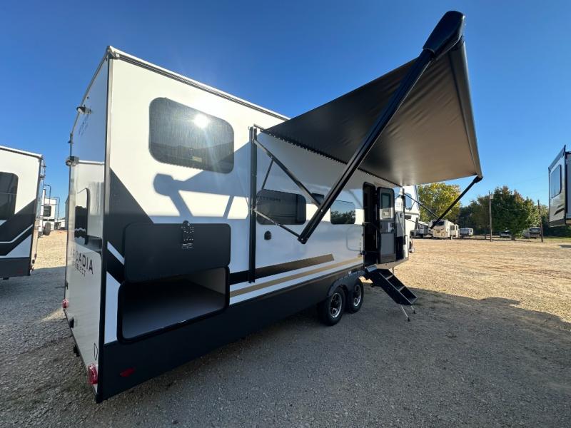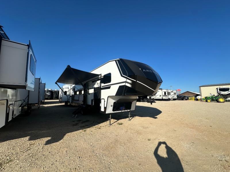 With any Arcadia Select fifth wheel by Keystone you will enjoy easy towability and at-home comforts at an affordable price! The laminated sidewalls with five sided aluminum superstructure will provide a strong foundation so you can enjoy your RV for years to come, plus a one-piece, heated and enclosed polypropylene underbelly means you can camp year around! And an upgraded Roto-Flex hitch pin will make it easy to tow. Head inside to find tall slides for added space, seamless, pressed countertops, convenient underbed storage, and a large shower with a retractable door and skylight. These fifth wheels also include a Blade Pure A/C system, Girard on-demand tankless water heater, two 30 lb. LP tanks, and more utilities to make your camping experience run smoothly.