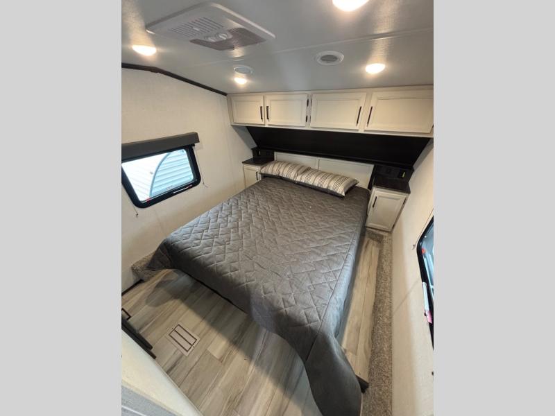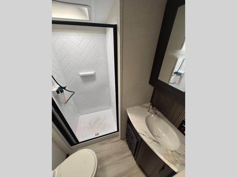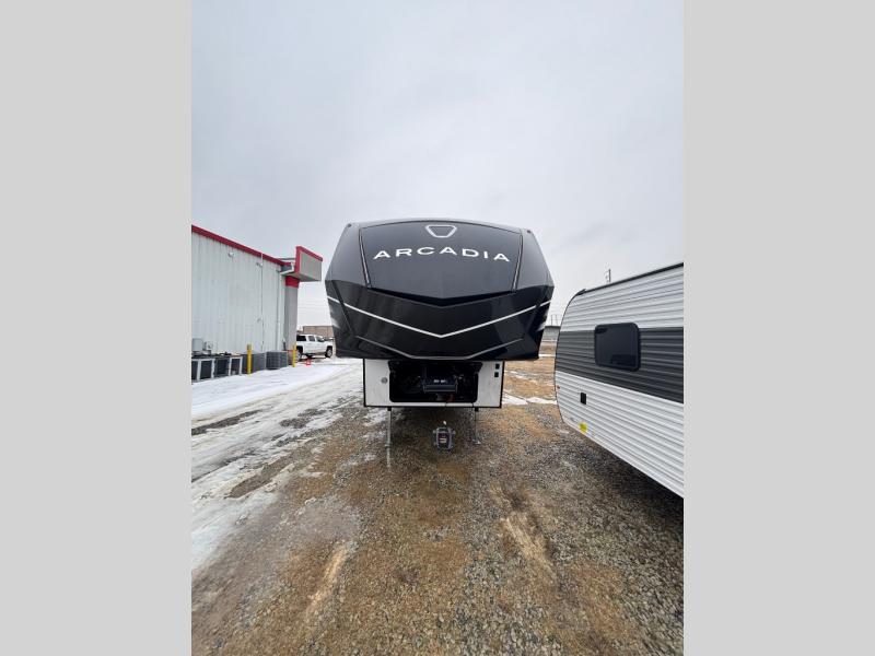 With any Arcadia Select fifth wheel by Keystone you will enjoy easy towability and at-home comforts at an affordable price! The laminated sidewalls with five sided aluminum superstructure will provide a strong foundation so you can enjoy your RV for years to come, plus a one-piece, heated and enclosed polypropylene underbelly means you can camp year around! And an upgraded Roto-Flex hitch pin will make it easy to tow. Head inside to find tall slides for added space, seamless, pressed countertops, convenient underbed storage, and a large shower with a retractable door and skylight. These fifth wheels also include a Blade Pure A/C system, Girard on-demand tankless water heater, two 30 lb. LP tanks, and more utilities to make your camping experience run smoothly.