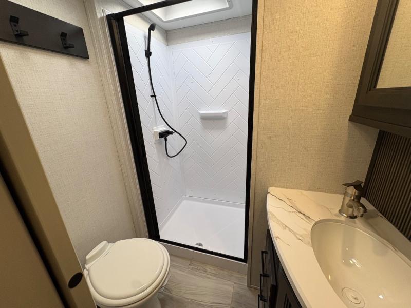 With any Arcadia Select fifth wheel by Keystone you will enjoy easy towability and at-home comforts at an affordable price! The laminated sidewalls with five sided aluminum superstructure will provide a strong foundation so you can enjoy your RV for years to come, plus a one-piece, heated and enclosed polypropylene underbelly means you can camp year around! And an upgraded Roto-Flex hitch pin will make it easy to tow. Head inside to find tall slides for added space, seamless, pressed countertops, convenient underbed storage, and a large shower with a retractable door and skylight. These fifth wheels also include a Blade Pure A/C system, Girard on-demand tankless water heater, two 30 lb. LP tanks, and more utilities to make your camping experience run smoothly.
