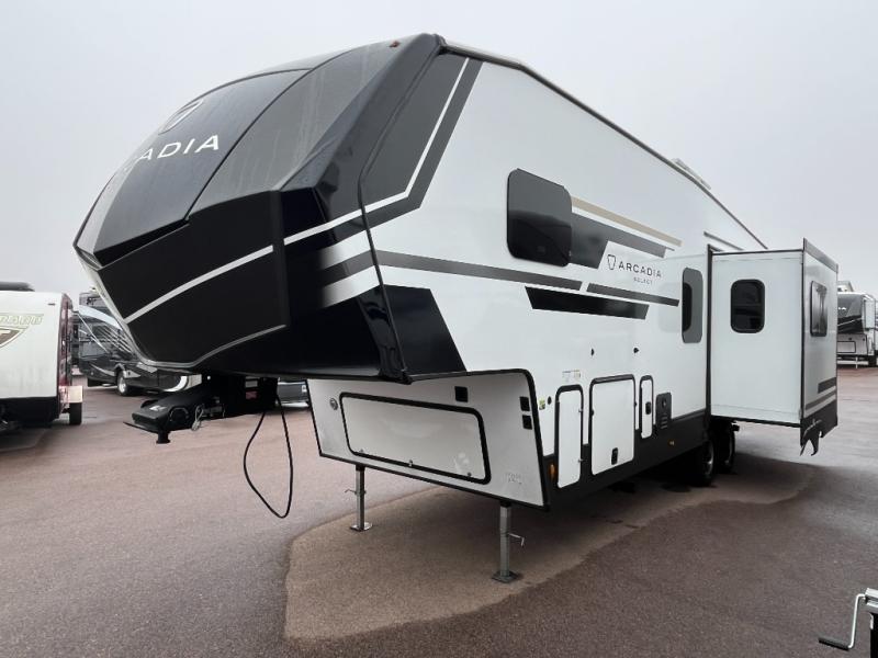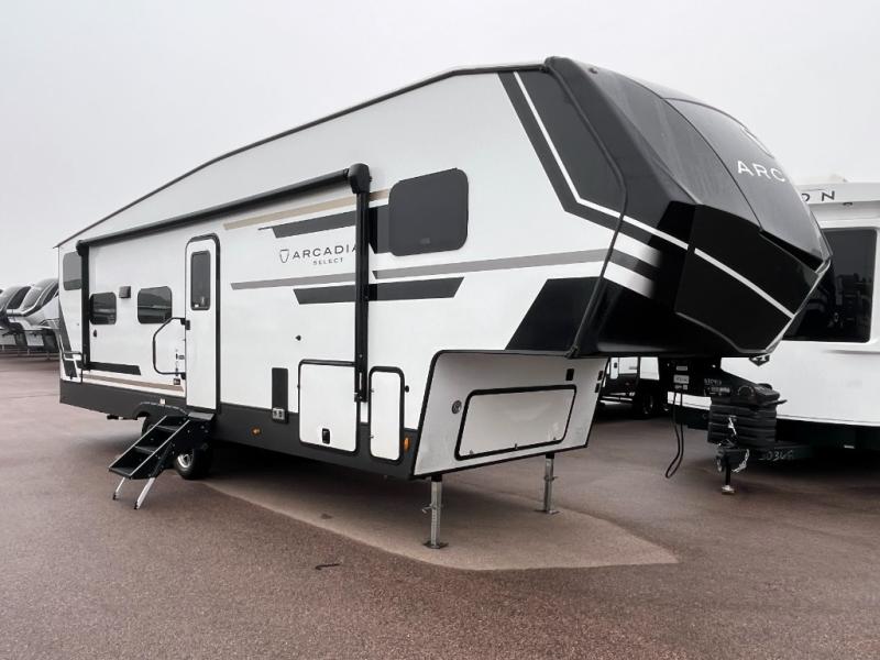 With any Arcadia Select fifth wheel by Keystone you will enjoy easy towability and at-home comforts at an affordable price! The laminated sidewalls with five sided aluminum superstructure will provide a strong foundation so you can enjoy your RV for years to come, plus a one-piece, heated and enclosed polypropylene underbelly means you can camp year around! And an upgraded Roto-Flex hitch pin will make it easy to tow. Head inside to find tall slides for added space, seamless, pressed countertops, convenient underbed storage, and a large shower with a retractable door and skylight. These fifth wheels also include a Blade Pure A/C system, Girard on-demand tankless water heater, two 30 lb. LP tanks, and more utilities to make your camping experience run smoothly.
