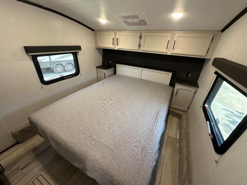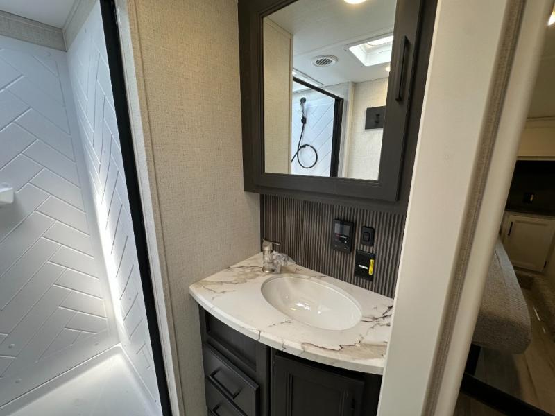 With any Arcadia Select fifth wheel by Keystone you will enjoy easy towability and at-home comforts at an affordable price! The laminated sidewalls with five sided aluminum superstructure will provide a strong foundation so you can enjoy your RV for years to come, plus a one-piece, heated and enclosed polypropylene underbelly means you can camp year around! And an upgraded Roto-Flex hitch pin will make it easy to tow. Head inside to find tall slides for added space, seamless, pressed countertops, convenient underbed storage, and a large shower with a retractable door and skylight. These fifth wheels also include a Blade Pure A/C system, Girard on-demand tankless water heater, two 30 lb. LP tanks, and more utilities to make your camping experience run smoothly.