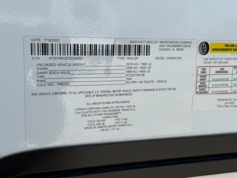 New 2026 Keystone RV Arcadia Select 28SLS Fifth Wheel