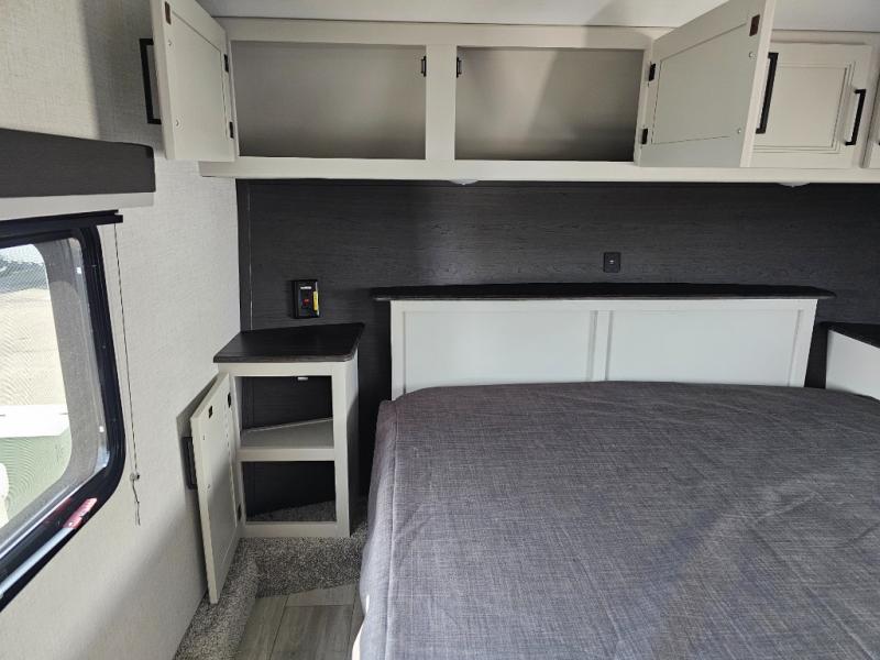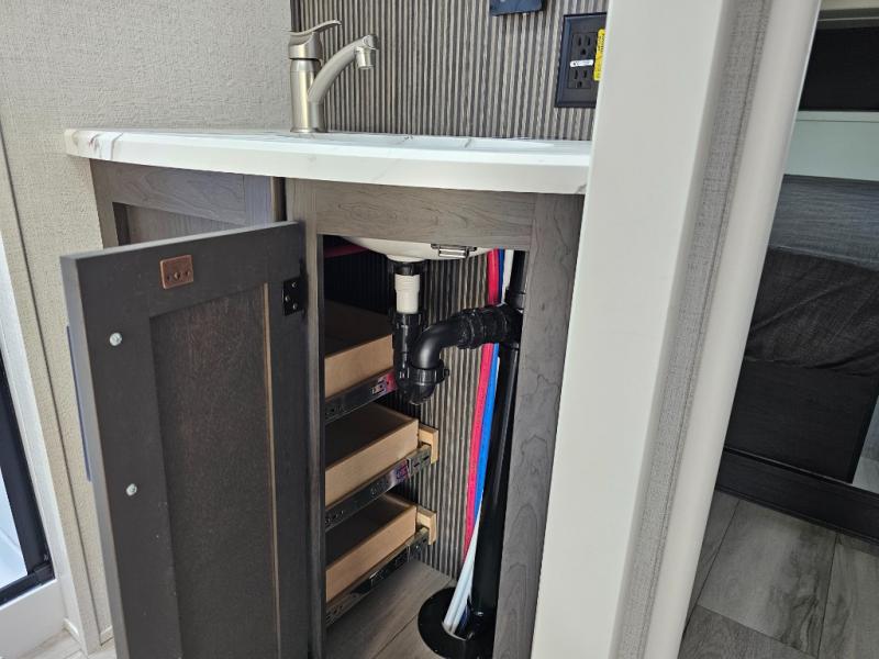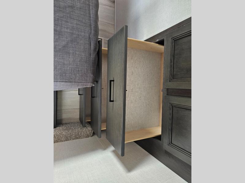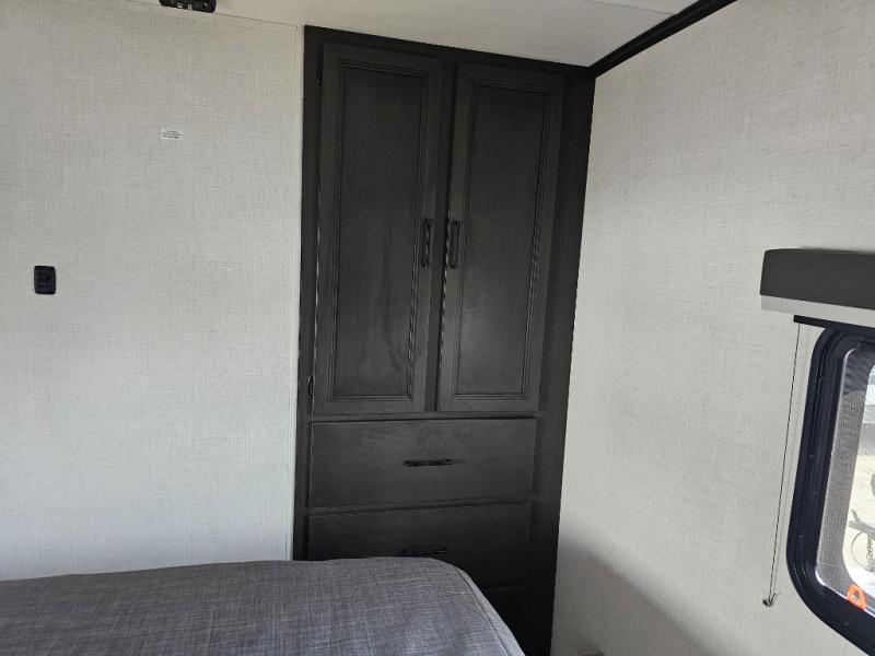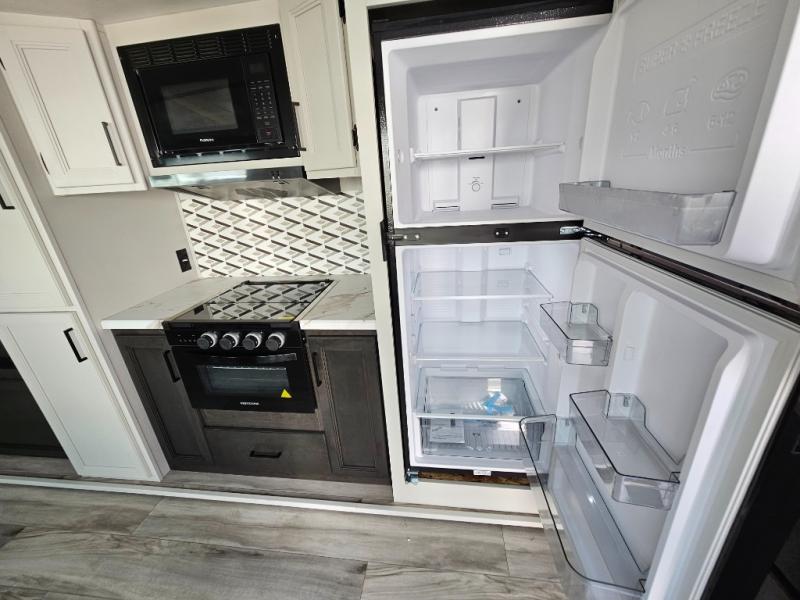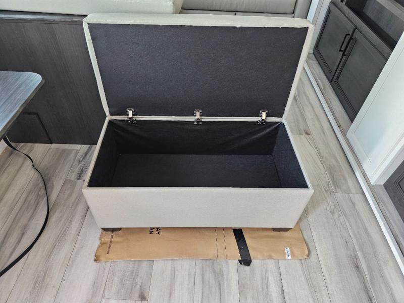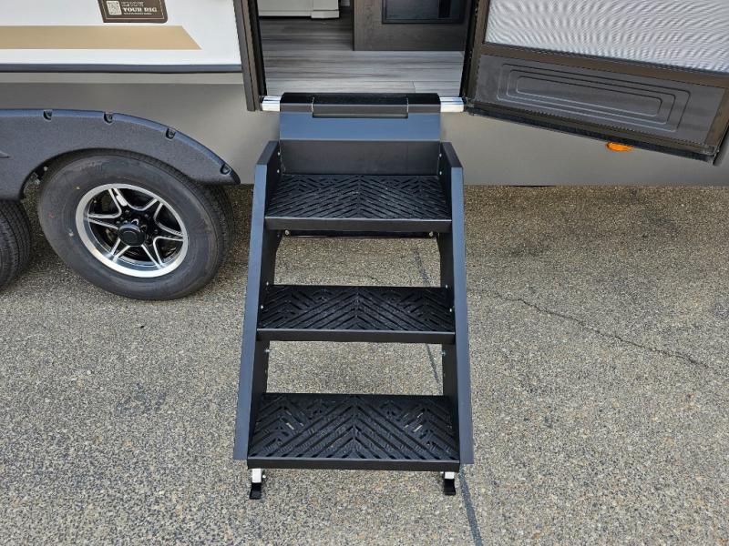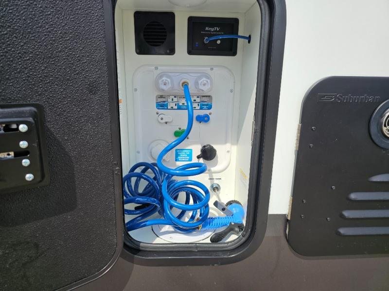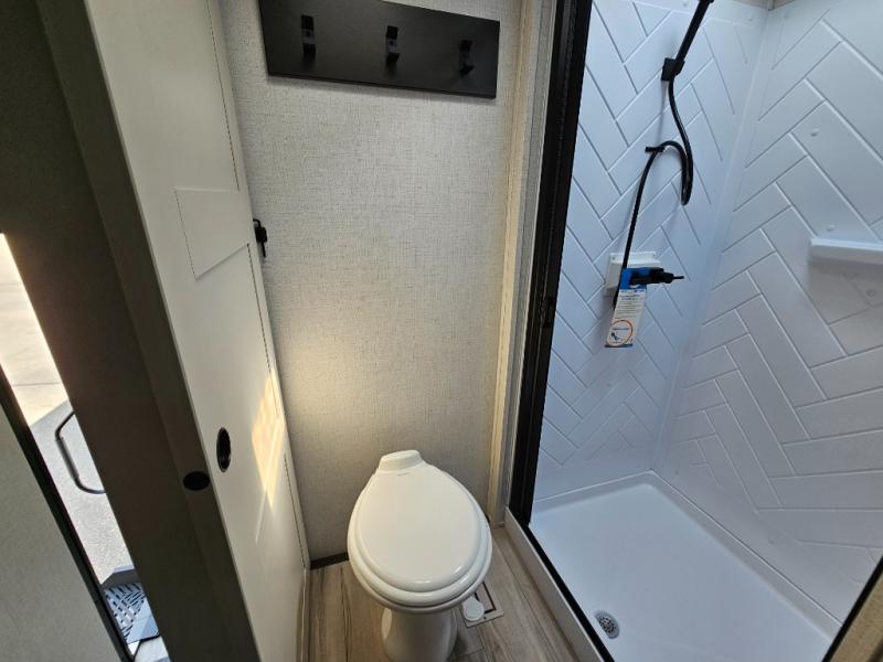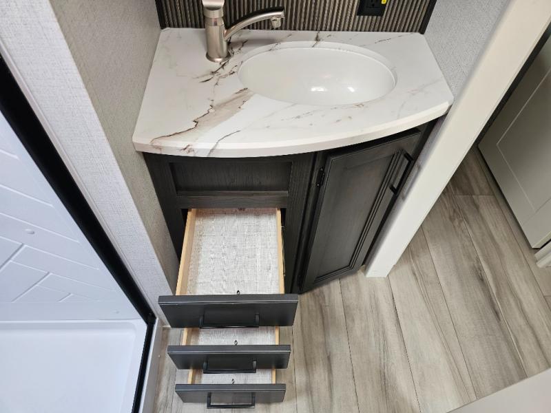 This fifth wheel will be the best RV vehicle for you and your family. Built to offer the ultimate comfort, this fifth wheel has a spacious living area that boasts a tri-fold sofa and sofa with recliners, perfect to rest while enjoying your tour favorites shows in the fabulous entertainment center. You can cook like a Michelin star chef in the incredible kitchen, fitted with a convection microwave, refrigerator, and three-burner range. Also, the overhead cabinets and pantry will allow you to keep all your food and spices organized on the go, and when your meal is done, you can enjoy it in the comfortable dinette. Convenience is our top priority; that is why the full bathroom is equipped with everything needed to take a nice shower. Finally, retreat to the comfortable queen bed, ideal for a deserved good night's rest.