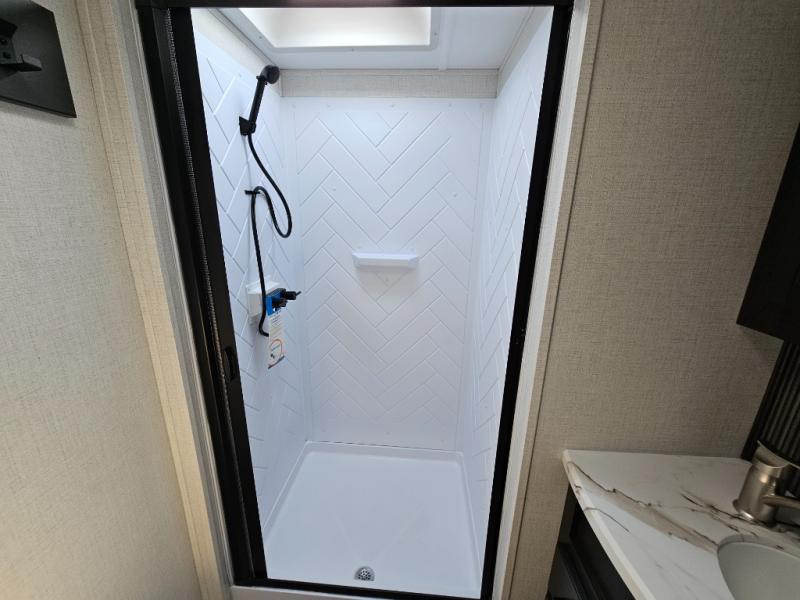 With any Arcadia Select fifth wheel by Keystone you will enjoy easy towability and at-home comforts at an affordable price! The laminated sidewalls with five sided aluminum superstructure will provide a strong foundation so you can enjoy your RV for years to come, plus a one-piece, heated and enclosed polypropylene underbelly means you can camp year around! And an upgraded Roto-Flex hitch pin will make it easy to tow. Head inside to find tall slides for added space, seamless, pressed countertops, convenient underbed storage, and a large shower with a retractable door and skylight. These fifth wheels also include a Blade Pure A/C system, Girard on-demand tankless water heater, two 30 lb. LP tanks, and more utilities to make your camping experience run smoothly.
