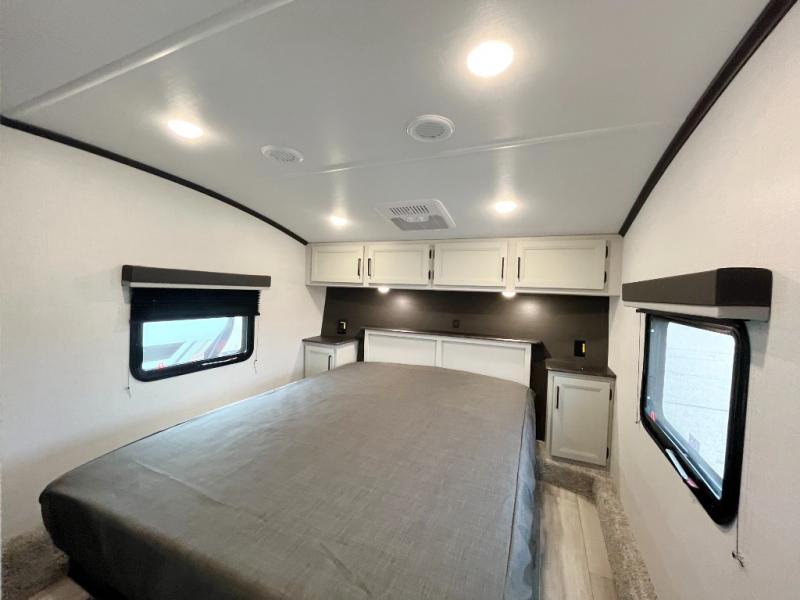 With any Arcadia Select fifth wheel by Keystone you will enjoy easy towability and at-home comforts at an affordable price! The laminated sidewalls with five sided aluminum superstructure will provide a strong foundation so you can enjoy your RV for years to come, plus a one-piece, heated and enclosed polypropylene underbelly means you can camp year around! And an upgraded Roto-Flex hitch pin will make it easy to tow. Head inside to find tall slides for added space, seamless, pressed countertops, convenient underbed storage, and a large shower with a retractable door and skylight. These fifth wheels also include a Blade Pure A/C system, Girard on-demand tankless water heater, two 30 lb. LP tanks, and more utilities to make your camping experience run smoothly.