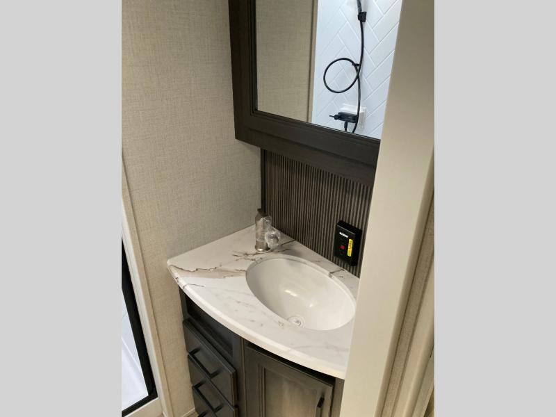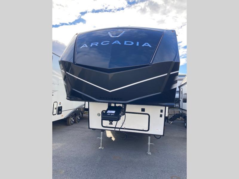 With any Arcadia Select fifth wheel by Keystone you will enjoy easy towability and at-home comforts at an affordable price! The laminated sidewalls with five sided aluminum superstructure will provide a strong foundation so you can enjoy your RV for years to come, plus a one-piece, heated and enclosed polypropylene underbelly means you can camp year around! And an upgraded Roto-Flex hitch pin will make it easy to tow. Head inside to find tall slides for added space, seamless, pressed countertops, convenient underbed storage, and a large shower with a retractable door and skylight. These fifth wheels also include a Blade Pure A/C system, Girard on-demand tankless water heater, two 30 lb. LP tanks, and more utilities to make your camping experience run smoothly.