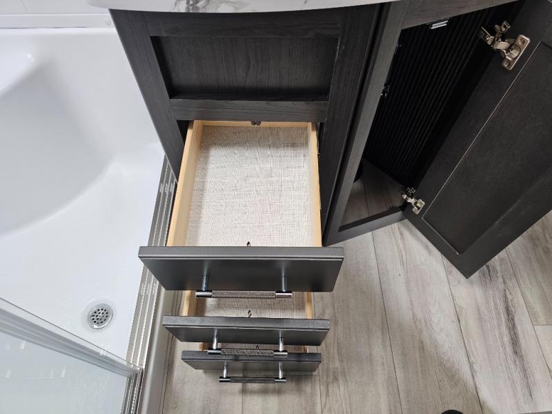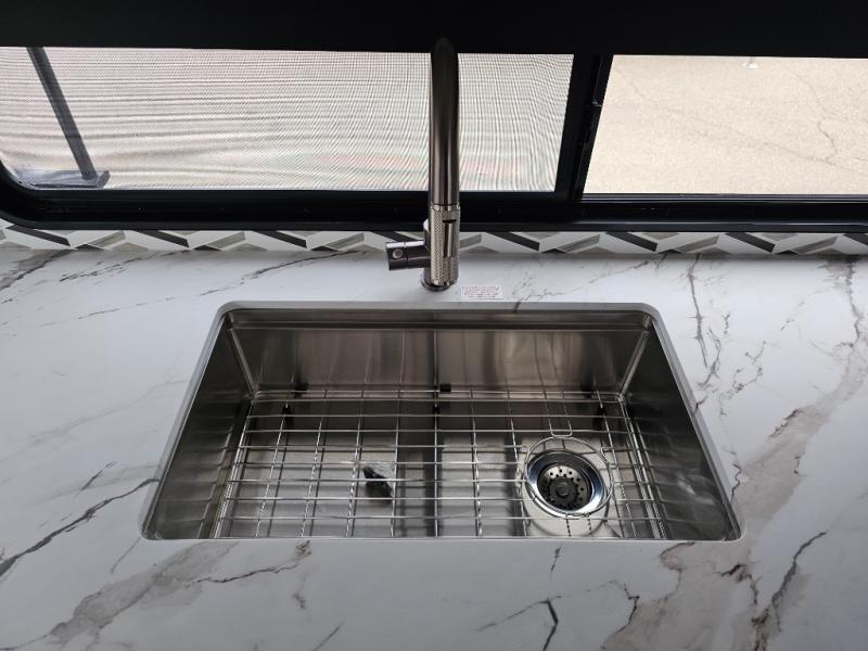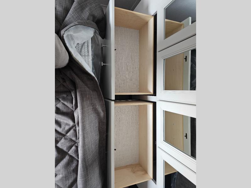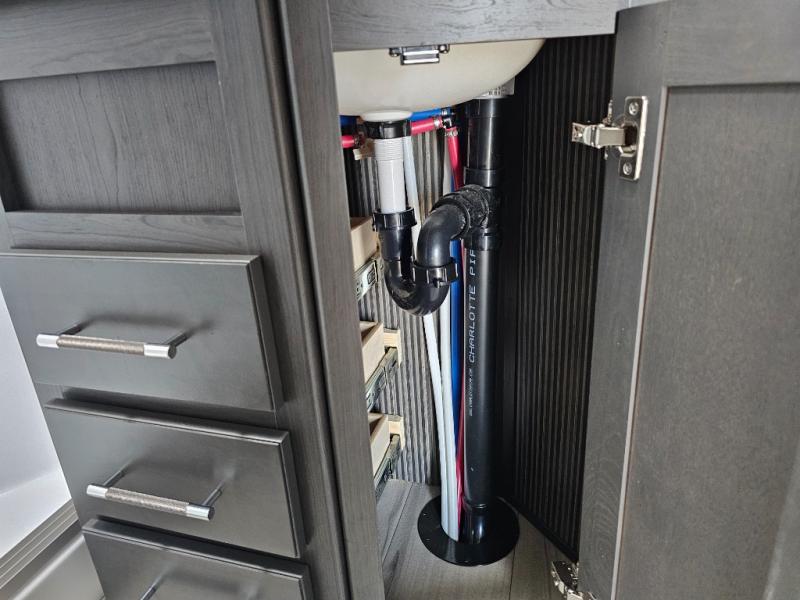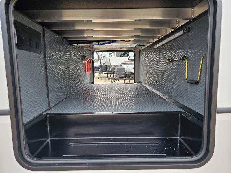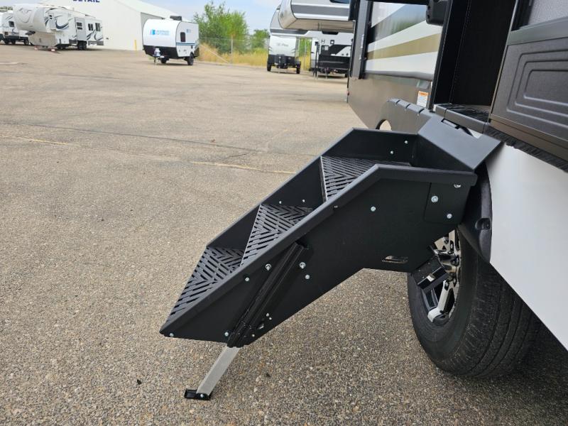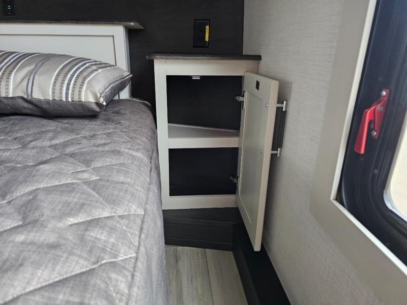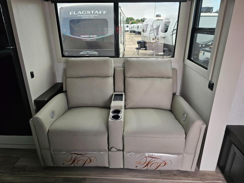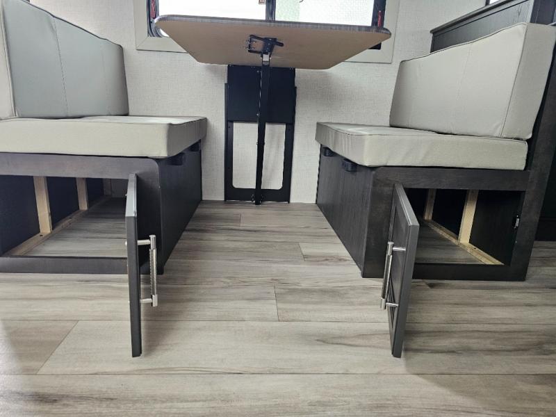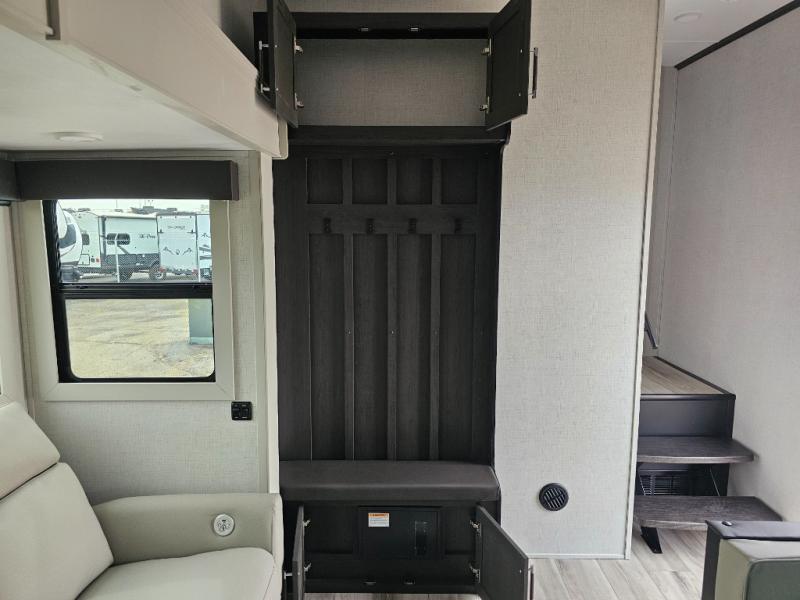 This rear kitchen fifth wheel is packed with features to make each trip memorable! Once you've arrived at the campground and set up the 21' electric awning, you can start lunch on the Grill-N-Chill outdoor kitchen before heading inside. If the weather isn't cooperating, you'll find a 21" Furrion range in the rear kitchen to whip up a meal. There is also a pantry and 12V "Solar Friendly" refrigerator for food storage. The theater seating will provide a place for you to relax in the evenings, and the full bath with a spacious shower means you can clean up before bed. Speaking of bedtime, the front private bedroom includes a queen bed for a great night's rest. There are also dual nightstands and a wardrobe slide to keep your space tidy!