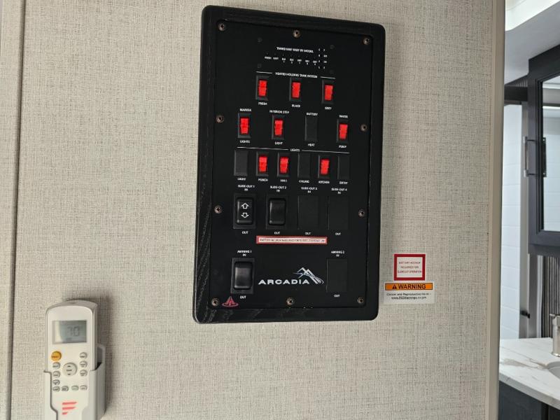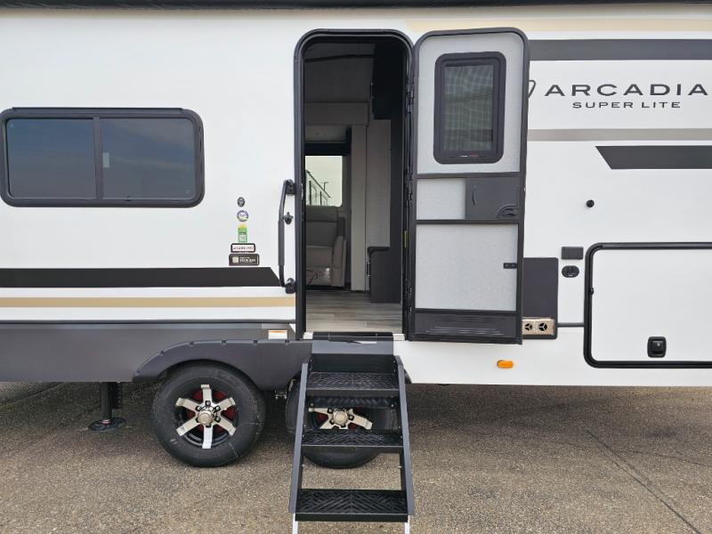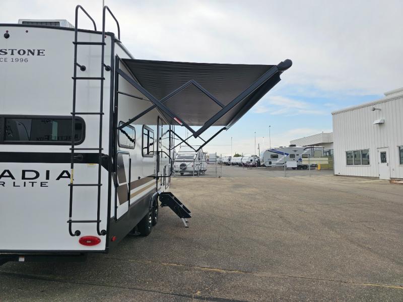 With any Arcadia Super Lite fifth wheel by Keystone, you will enjoy easy-to-tow lengths, unmatched storage, and plenty of windows to let the outdoor views in. The structural I-beam frame will provide a strong foundation to your RV, and the Full pass-through storage for all your equipment and camping gear. You will be able to camp in cold and hot climates thanks to the Peak Weather Package that includes a heated and enclosed underbelly, two Furrion A/C for cool temperatures in the summer, and Keystone's exclusive HyperDeck floor that adds an additional layer of insulation to your floor. The interior will make you feel at home with residential hardware, seamless pressed countertops, black roller shades, and ample storage space. Sometimes the best things come in smaller packages; choose a Arcadia Super Lite today!
