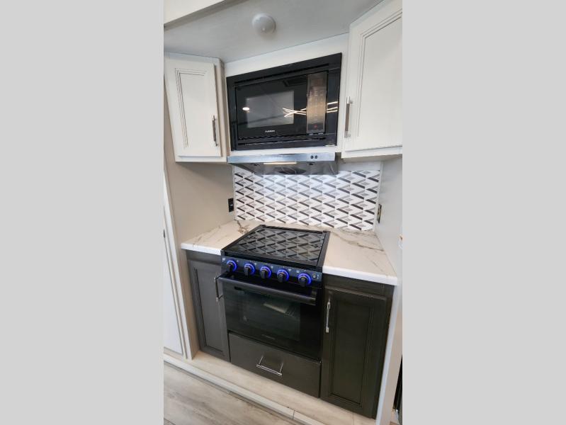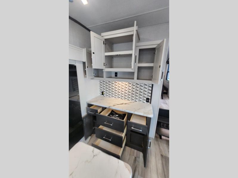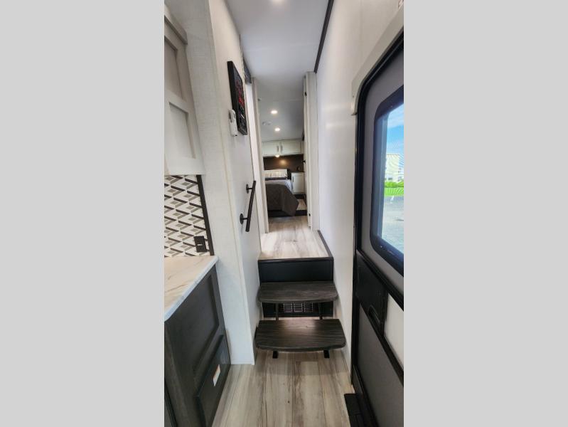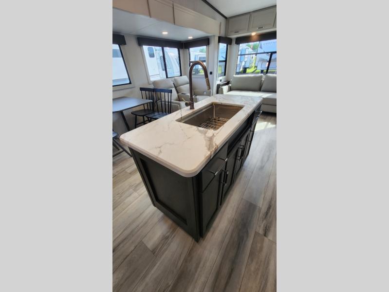 With any Arcadia Super Lite fifth wheel by Keystone, you will enjoy easy-to-tow lengths, unmatched storage, and plenty of windows to let the outdoor views in. The structural I-beam frame will provide a strong foundation to your RV, and the Full pass-through storage for all your equipment and camping gear. You will be able to camp year around thanks to the Peak Weather Package that includes a heated and enclosed underbelly, two Furrion A/C for cool temperatures in the summer, and Keystone's exclusive HyperDeck floor that adds an additional layer of insulation to your floor. The interior will make you feel at home with residential hardware, seamless pressed countertops, black roller shades, and ample storage space. Sometimes the best things come in smaller packages; choose a Arcadia Super Lite today!