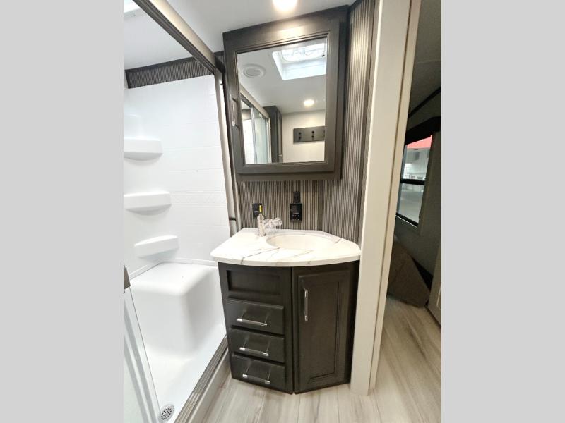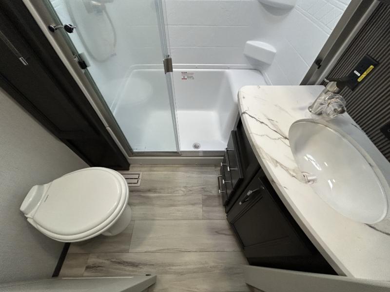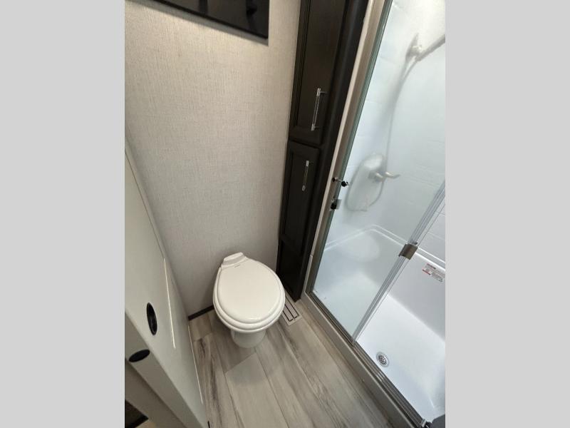 With any Arcadia Super Lite fifth wheel by Keystone, you will enjoy easy-to-tow lengths, unmatched storage, and plenty of windows to let the outdoor views in. The structural I-beam frame will provide a strong foundation to your RV, and the Full pass-through storage for all your equipment and camping gear. You will be able to camp in cold and hot climates thanks to the Peak Weather Package that includes a heated and enclosed underbelly, two Furrion A/C for cool temperatures in the summer, and Keystone's exclusive HyperDeck floor that adds an additional layer of insulation to your floor. The interior will make you feel at home with residential hardware, seamless pressed countertops, black roller shades, and ample storage space. Sometimes the best things come in smaller packages; choose a Arcadia Super Lite today!