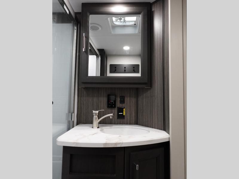 With any Arcadia Super Lite fifth wheel by Keystone, you will enjoy easy-to-tow lengths, unmatched storage, and oversized windows to let the outdoor views in. The structural I-beam frame will provide a strong foundation to your RV, and the Curt Performance Package means you can enjoy hassle-free towing. You will be able to camp year around thanks to the Peak Weather Package that includes a heated and enclosed underbelly, a 35K BTU furnace, and Keystone's exclusive HyperDeck floor that adds an additional layer of insulation to your floor. The interior will make you feel at home with residential hardware, seamless pressed countertops, black roller shades, and ample storage space. Sometimes the best things come in smaller packages; choose a Arcadia Super Lite today!