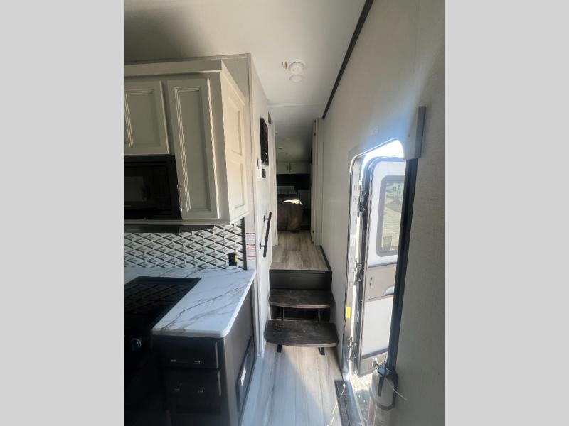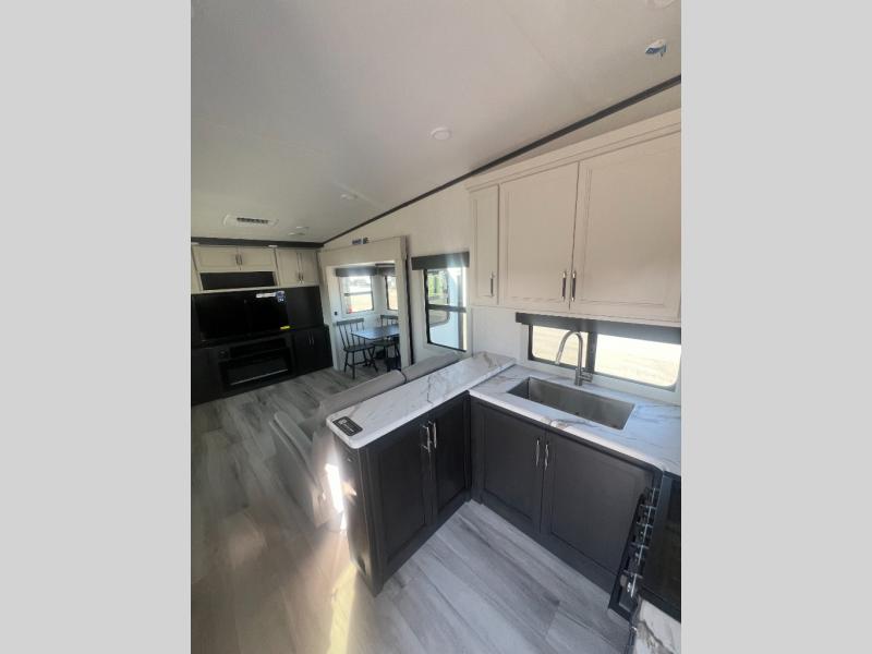 With any Arcadia Super Lite fifth wheel by Keystone, you will enjoy easy-to-tow lengths, unmatched storage, and plenty of windows to let the outdoor views in. The structural I-beam frame will provide a strong foundation to your RV, and the Full pass-through storage for all your equipment and camping gear. You will be able to camp in cold and hot climates thanks to the Peak Weather Package that includes a heated and enclosed underbelly, two Furrion A/C for cool temperatures in the summer, and Keystone's exclusive HyperDeck floor that adds an additional layer of insulation to your floor. The interior will make you feel at home with residential hardware, seamless pressed countertops, black roller shades, and ample storage space. Sometimes the best things come in smaller packages; choose a Arcadia Super Lite today!