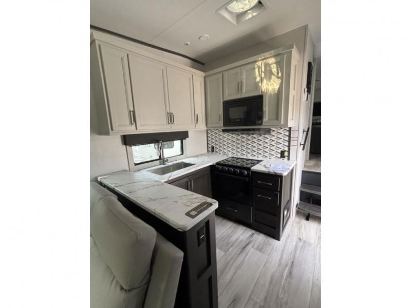 With any Arcadia Super Lite fifth wheel by Keystone, you will enjoy easy-to-tow lengths, unmatched storage, and plenty of windows to let the outdoor views in. The structural I-beam frame will provide a strong foundation to your RV, and the Full pass-through storage for all your equipment and camping gear. You will be able to camp in cold and hot climates thanks to the Peak Weather Package that includes a heated and enclosed underbelly, two Furrion A/C for cool temperatures in the summer, and Keystone's exclusive HyperDeck floor that adds an additional layer of insulation to your floor. The interior will make you feel at home with residential hardware, seamless pressed countertops, black roller shades, and ample storage space. Sometimes the best things come in smaller packages; choose a Arcadia Super Lite today!