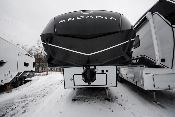 With any Arcadia Super Lite fifth wheel by Keystone, you will enjoy easy-to-tow lengths, unmatched storage, and plenty of windows to let the outdoor views in. The structural I-beam frame will provide a strong foundation to your RV, and the Full pass-through storage for all your equipment and camping gear. You will be able to camp in cold and hot climates thanks to the Peak Weather Package that includes a heated and enclosed underbelly, two Furrion A/C for cool temperatures in the summer, and Keystone's exclusive HyperDeck floor that adds an additional layer of insulation to your floor. The interior will make you feel at home with residential hardware, seamless pressed countertops, black roller shades, and ample storage space. Sometimes the best things come in smaller packages; choose a Arcadia Super Lite today!