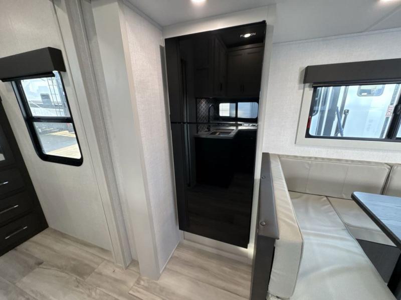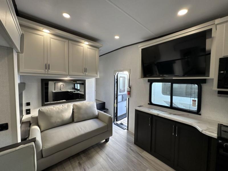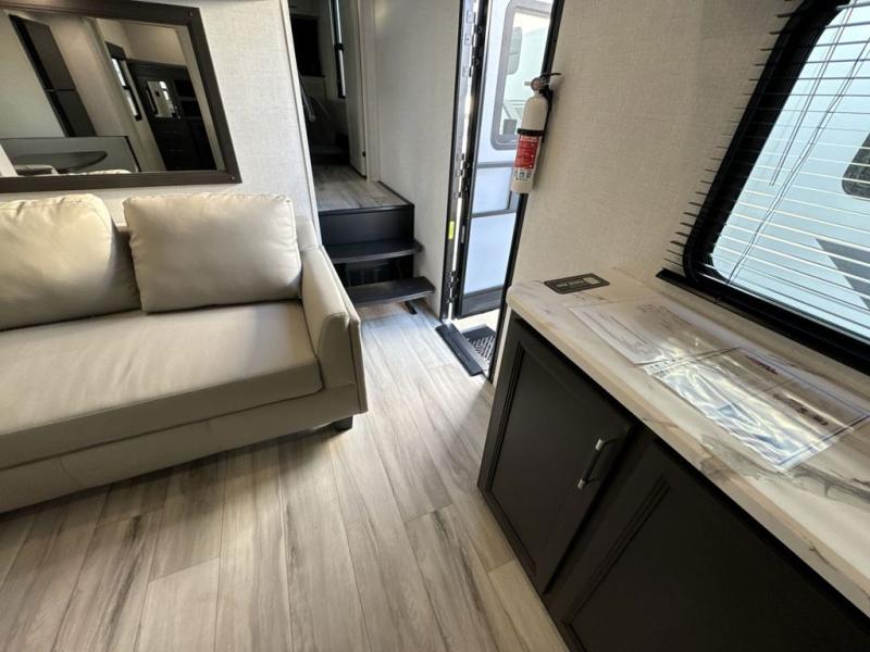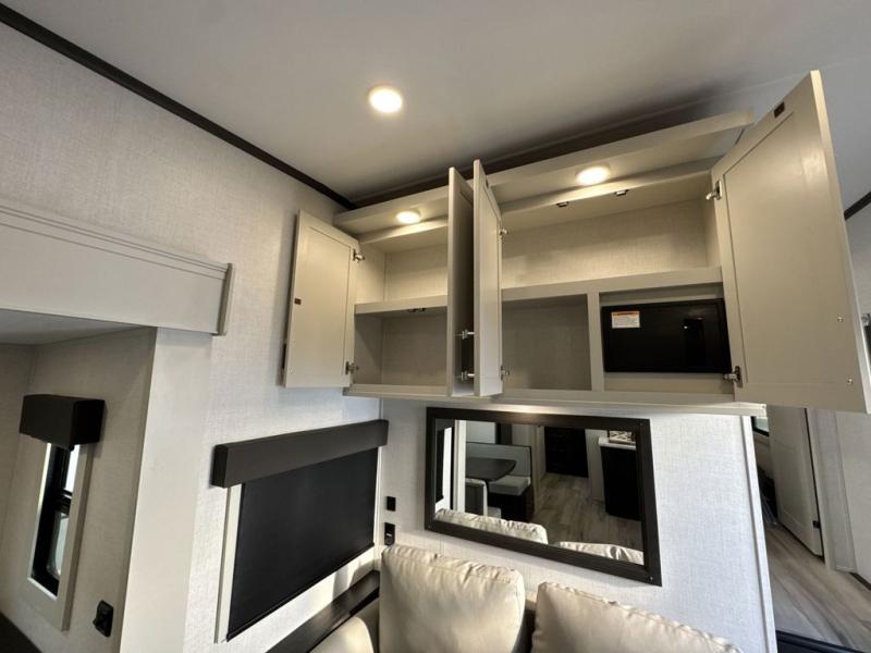 With any Arcadia Super Lite fifth wheel by Keystone, you will enjoy easy-to-tow lengths, unmatched storage, and plenty of windows to let the outdoor views in. The structural I-beam frame will provide a strong foundation to your RV, and the Full pass-through storage for all your equipment and camping gear. You will be able to camp in cold and hot climates thanks to the Peak Weather Package that includes a heated and enclosed underbelly, two Furrion A/C for cool temperatures in the summer, and Keystone's exclusive HyperDeck floor that adds an additional layer of insulation to your floor. The interior will make you feel at home with residential hardware, seamless pressed countertops, black roller shades, and ample storage space. Sometimes the best things come in smaller packages; choose a Arcadia Super Lite today!