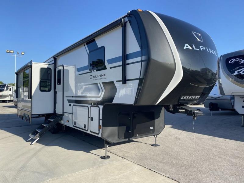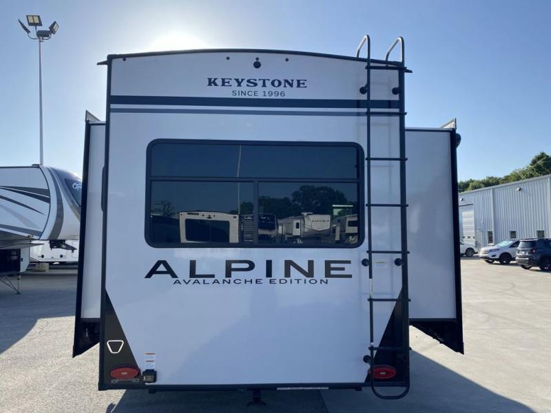 With any Keystone luxury Alpine Avalanche Edition fifth wheel, you will experience wide-body construction that allows you to stretch out and stay awhile during any season thanks to the Polar Pack All Season Protection that includes a heated and enclosed underbelly, an Astro foil reflective layer on the roof, front and rear walls, and two static attic vents, plus more! The interior offers hardwood slide out fascia with wood accents, designer upholstered window valances with custom wood window frame, plus your choice of modern interior design. There are many more Keystone exclusives, like the Tru-Fit slide construction, the in-floor heating ducts, KeyTV™, and much more to bring you a full-packed, luxury fifth wheel!