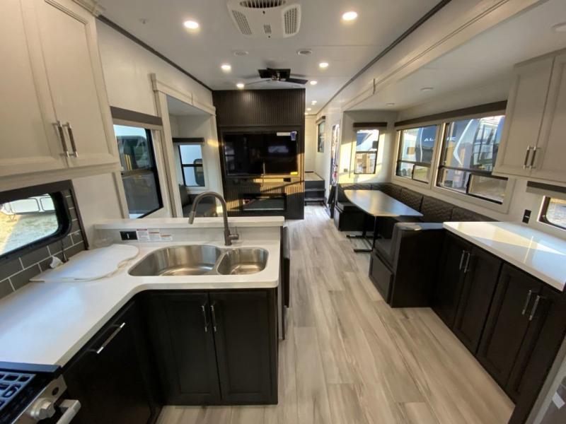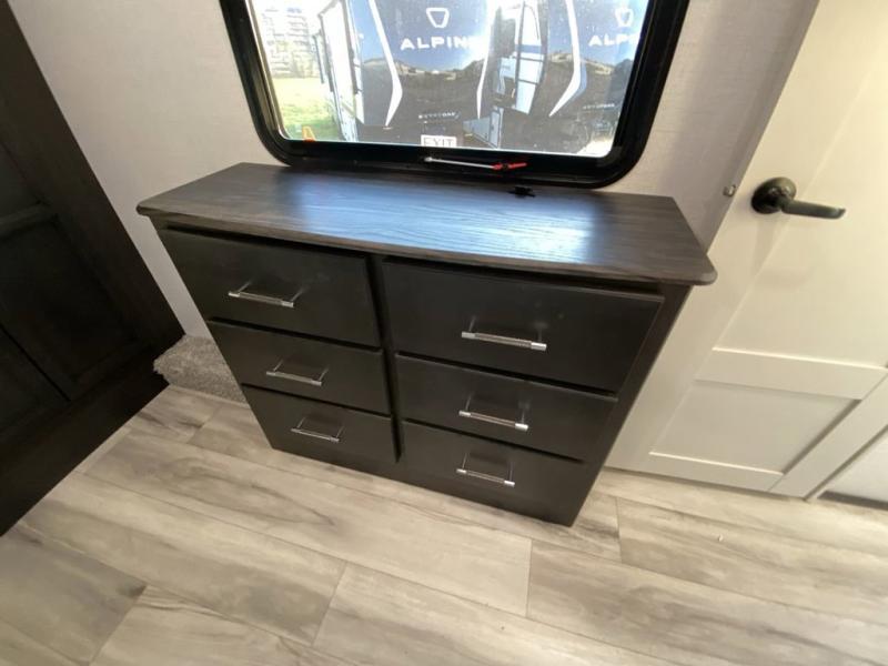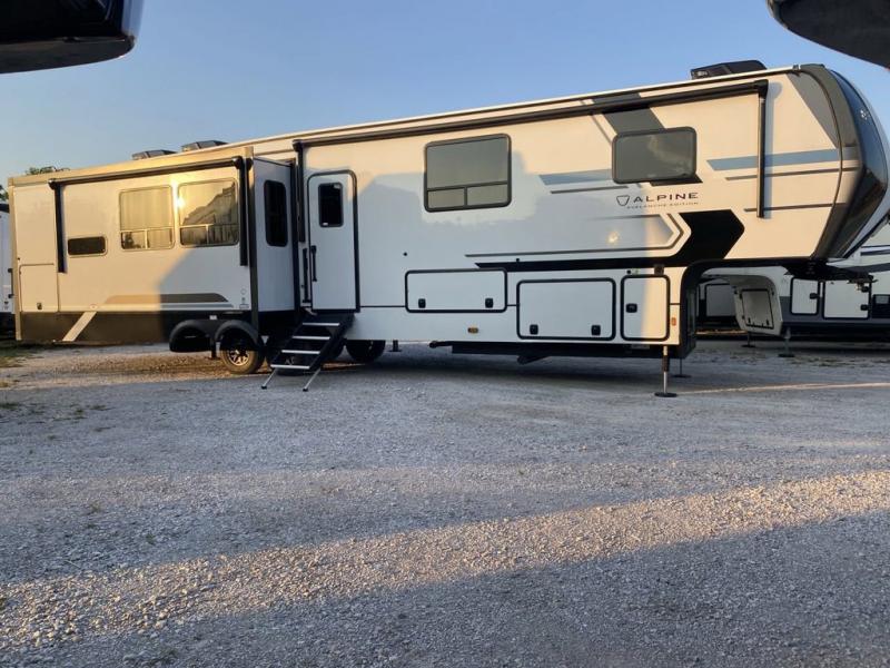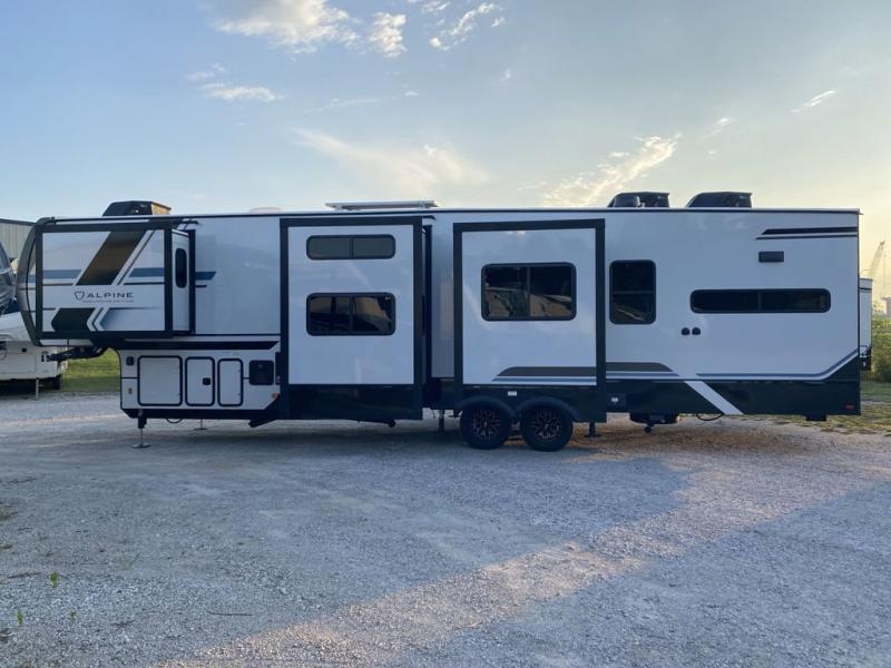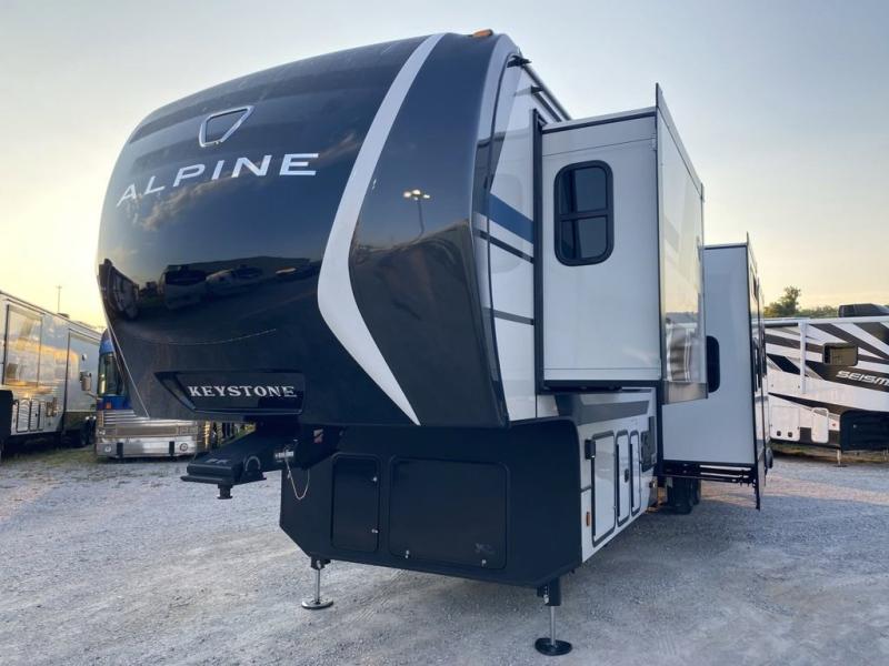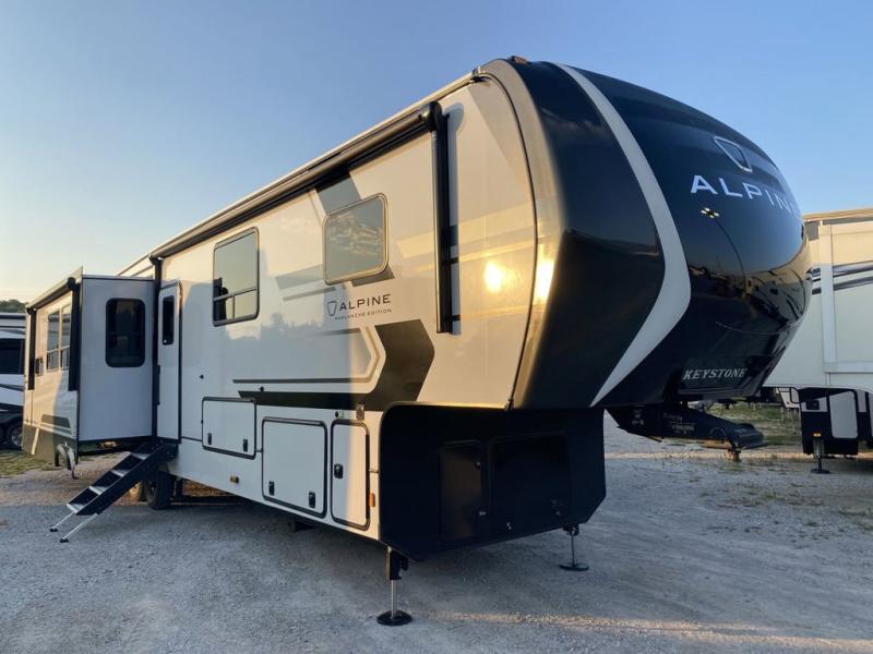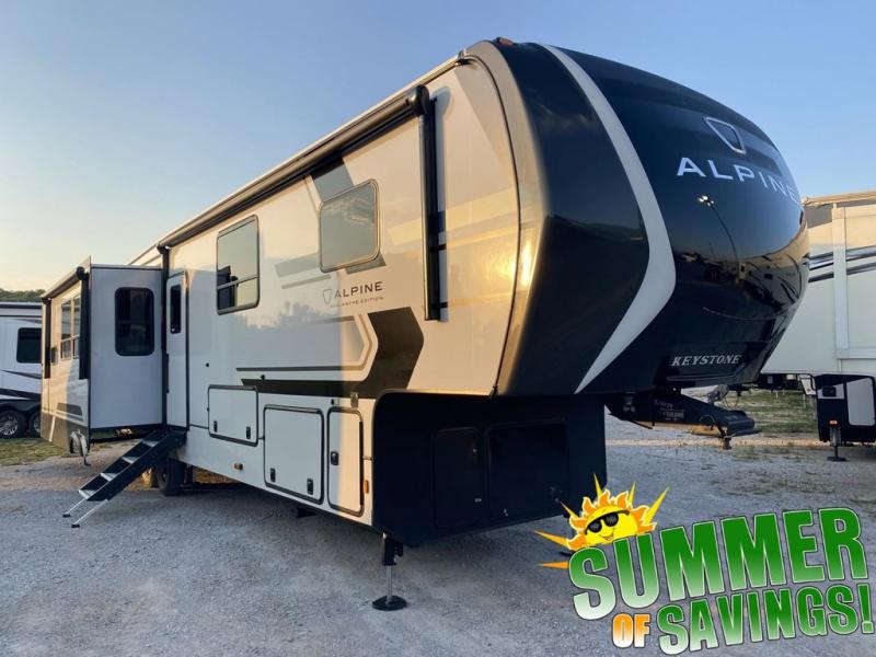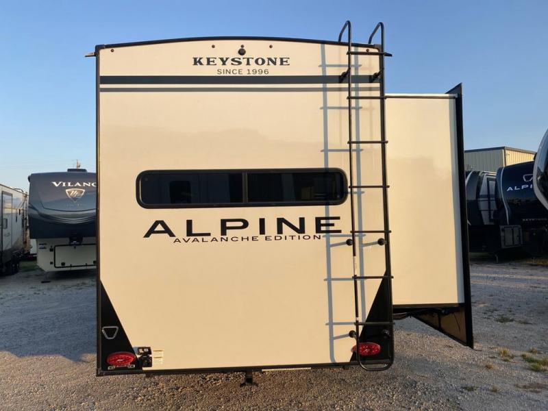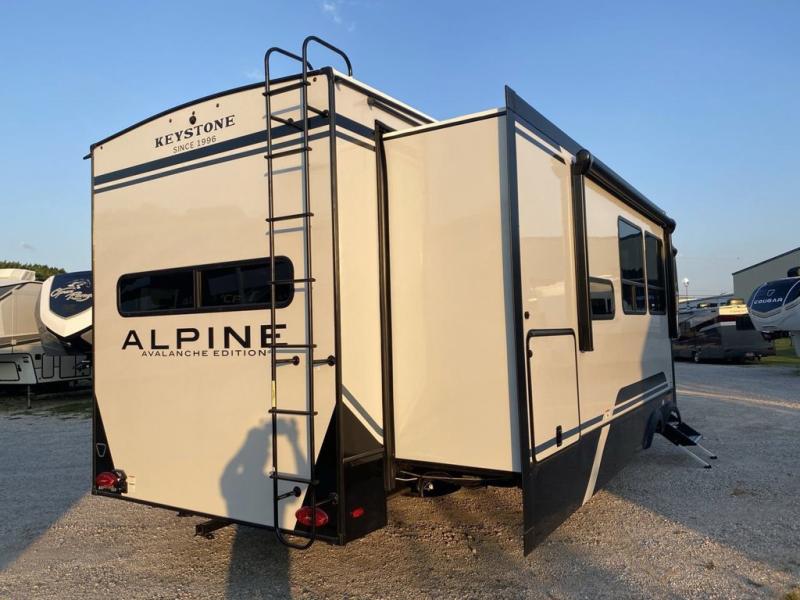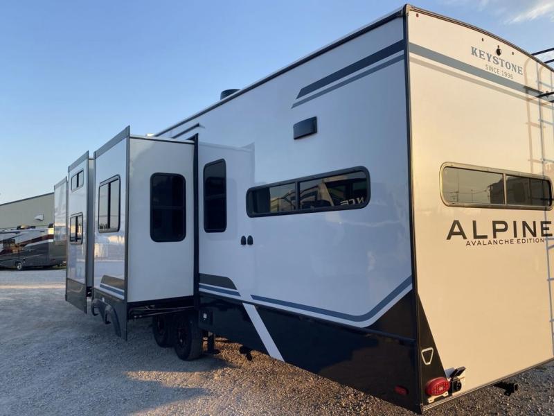 With any Keystone luxury Alpine Avalanche Edition fifth wheel, you will experience wide-body construction that allows you to stretch out and stay awhile during any season thanks to the Polar Pack All Season Protection that includes a heated and enclosed underbelly, an Astro foil reflective layer on the roof, front and rear walls, and two static attic vents, plus more! The interior offers hardwood slide out fascia with wood accents, designer upholstered window valances with custom wood window frame, plus your choice of modern interior design. There are many more Keystone exclusives, like the Tru-Fit slide construction, the in-floor heating ducts, KeyTV™, and much more to bring you a full-packed, luxury fifth wheel!