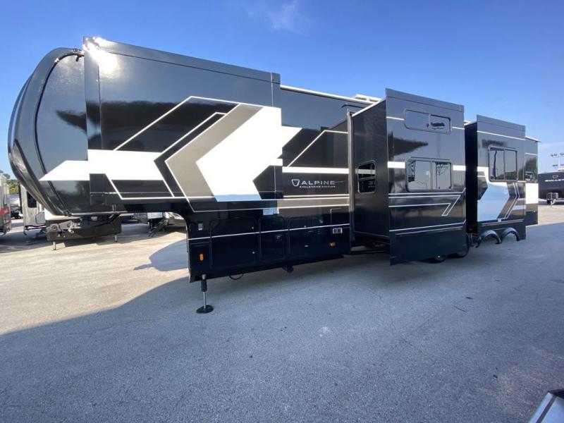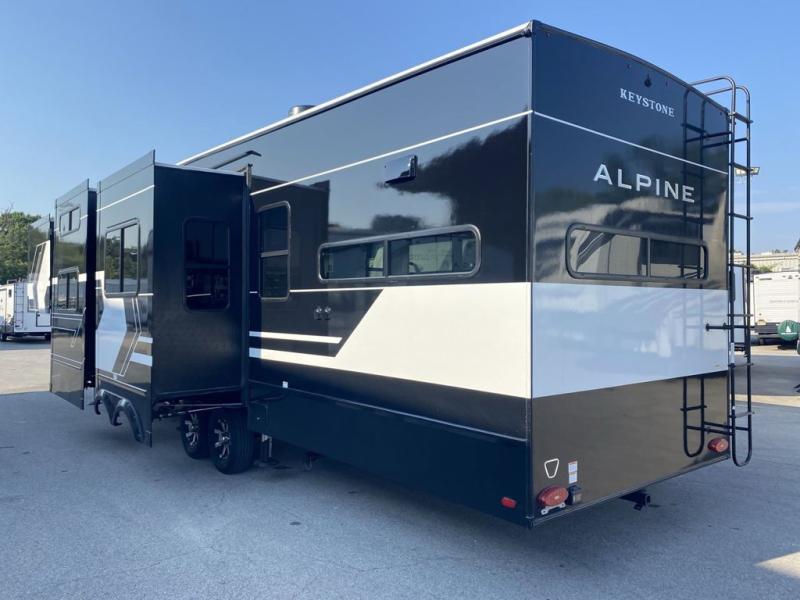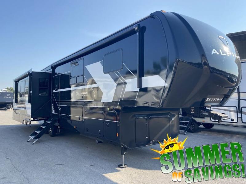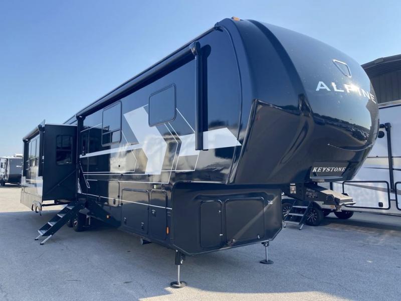 With any Keystone luxury Alpine Avalanche Edition fifth wheel, you will experience wide-body construction that allows you to stretch out and stay awhile during any season thanks to the Polar Pack All Season Protection that includes a heated and enclosed underbelly, an Astro foil reflective layer on the roof, front and rear walls, and two static attic vents, plus more! The interior offers hardwood slide out fascia with wood accents, designer upholstered window valances with custom wood window frame, plus your choice of modern interior design. There are many more Keystone exclusives, like the Tru-Fit slide construction, the in-floor heating ducts, KeyTV™, and much more to bring you a full-packed, luxury fifth wheel!