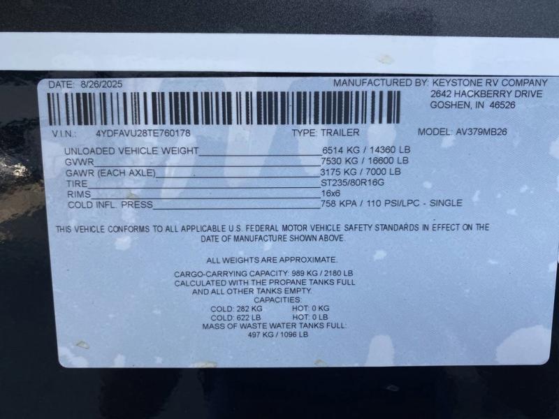 New 2026 Keystone RV Avalanche 379MB Fifth Wheel