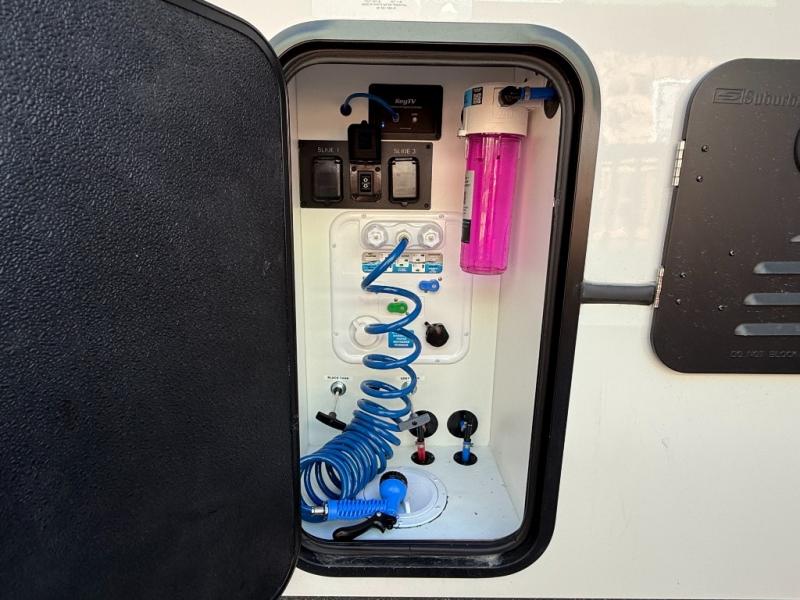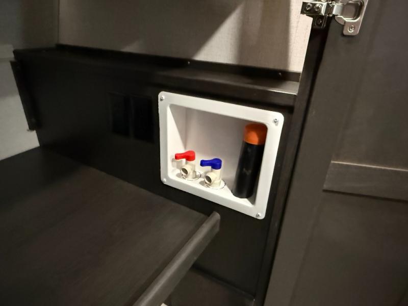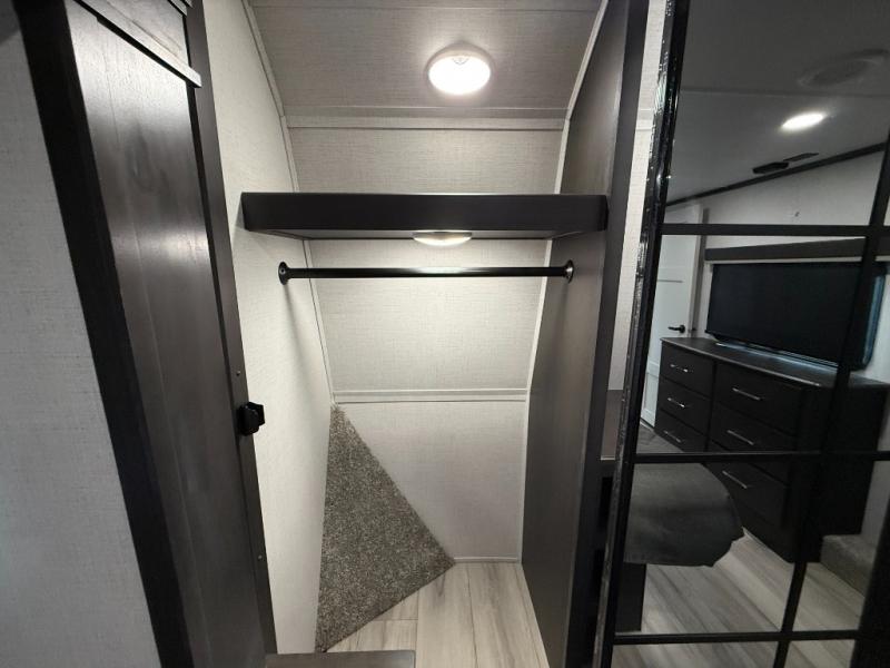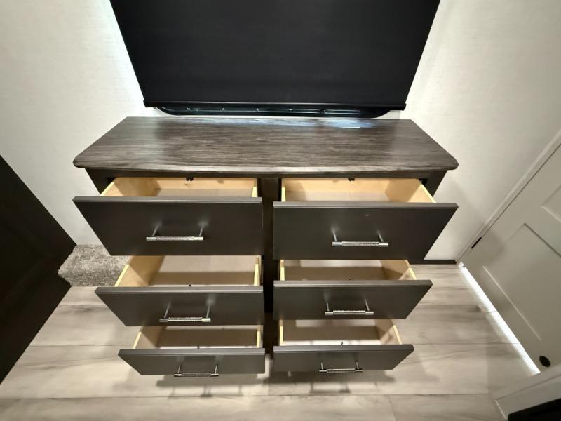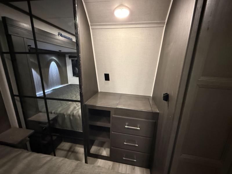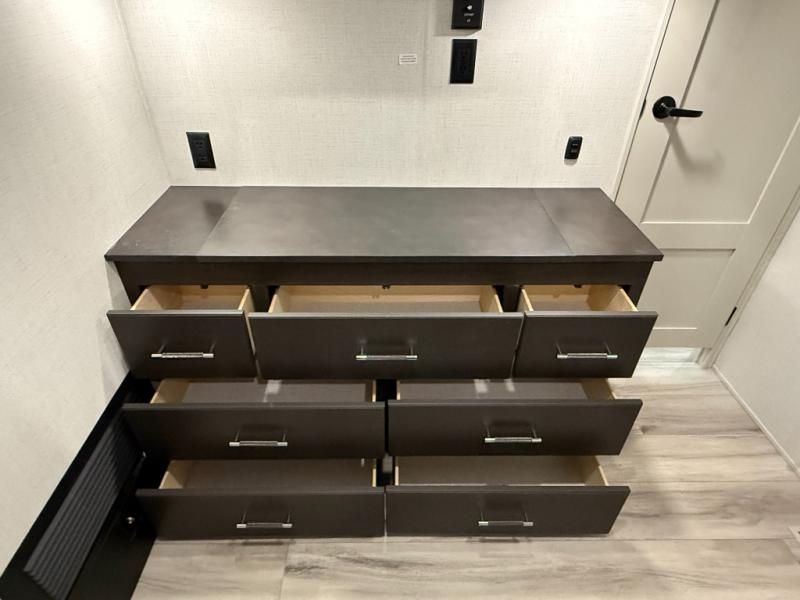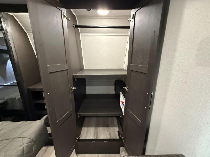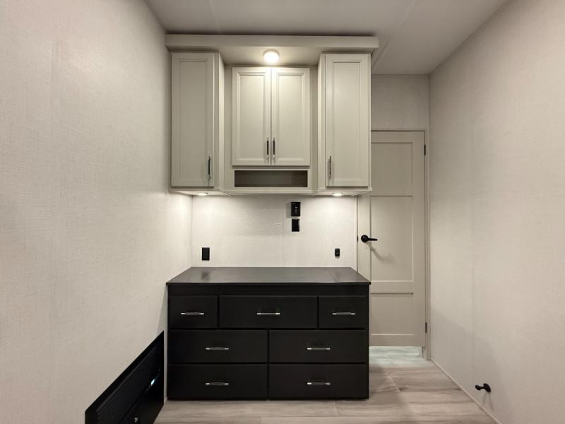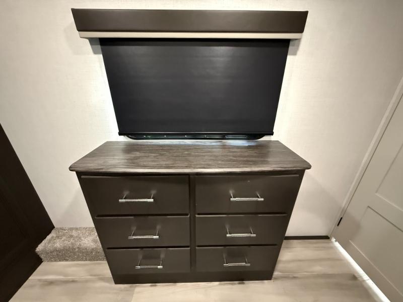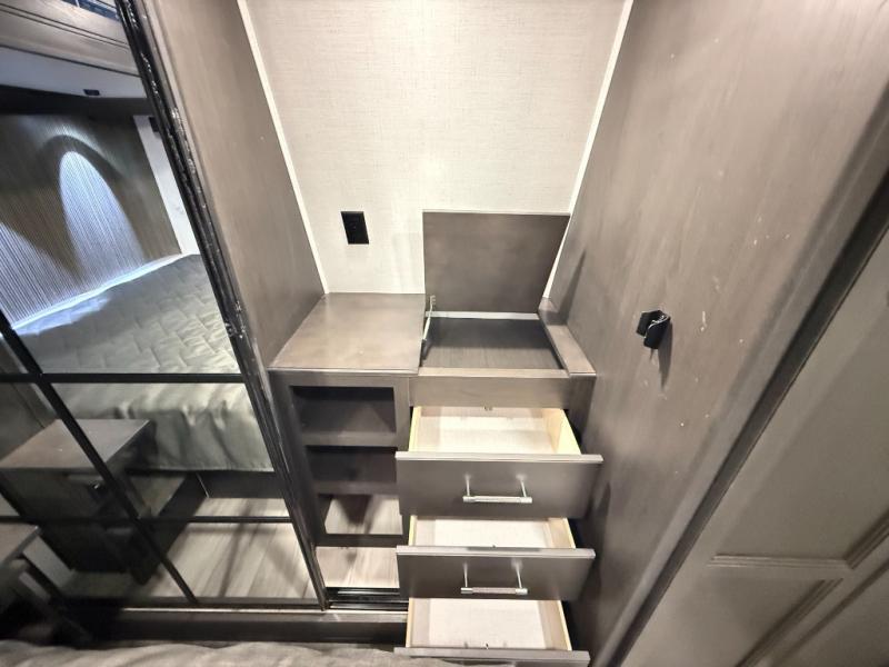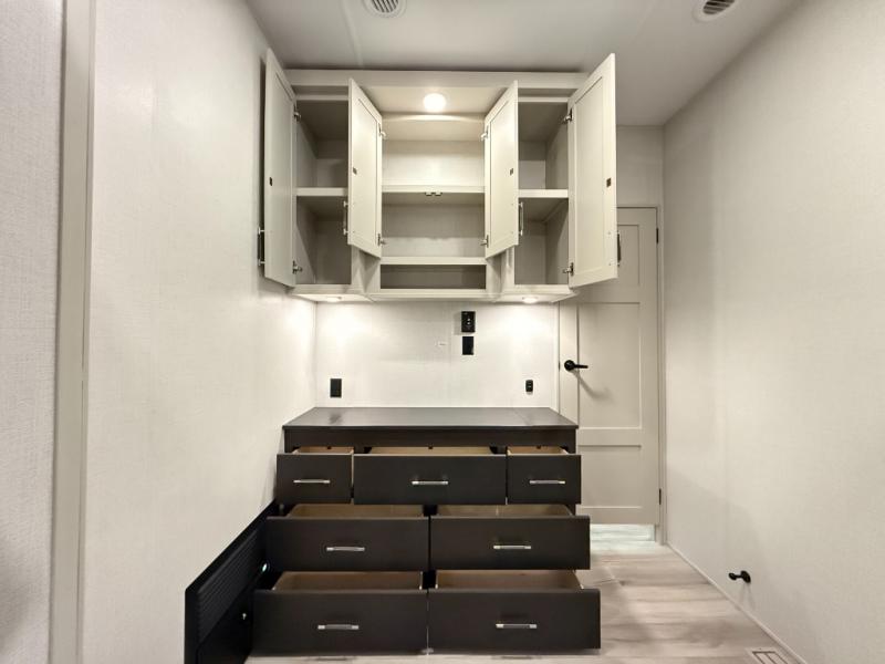 Front master bedroom with king bed slide-out and washer/dryer prep.
