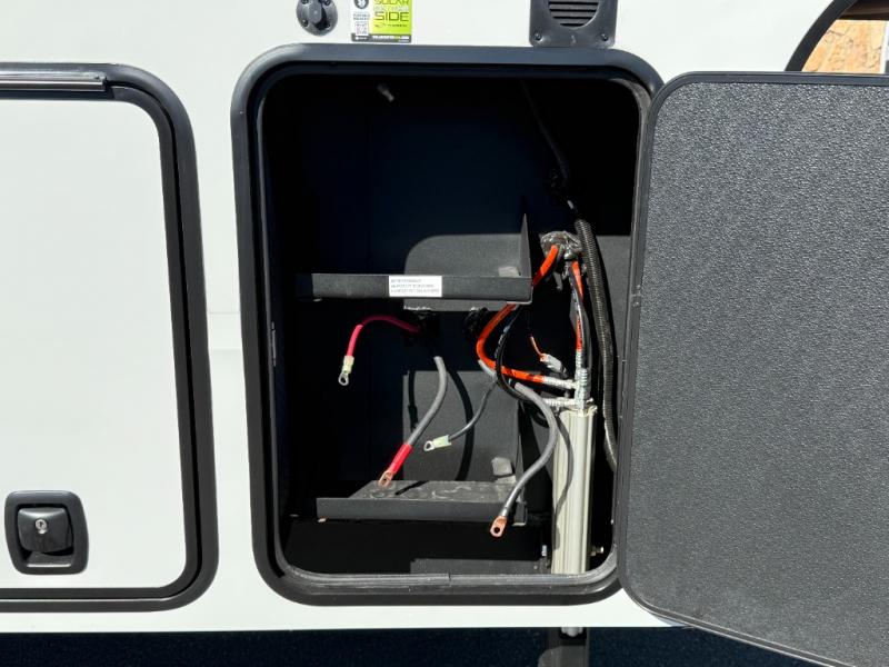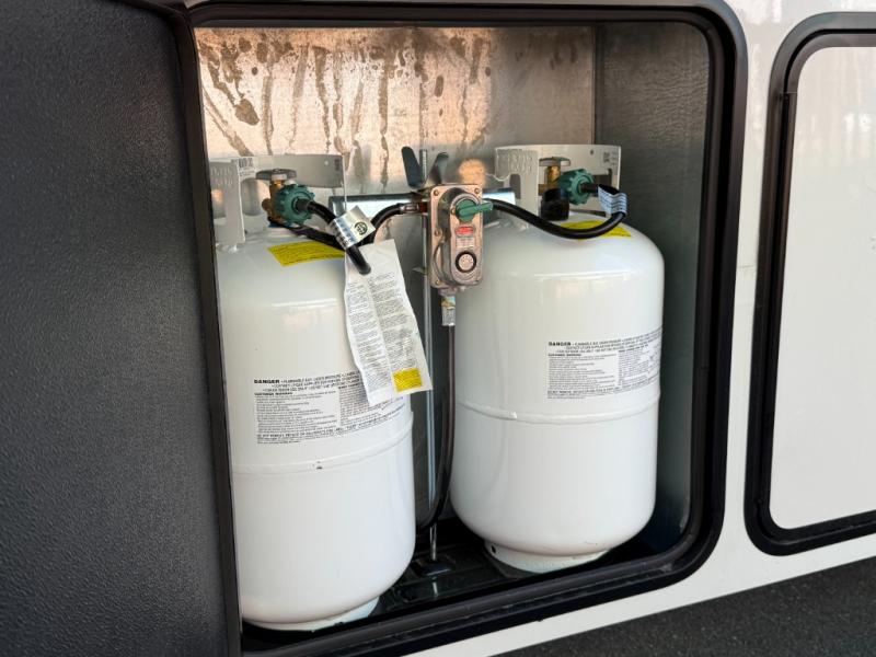 Exterior features: 50 amp electrical service, dual awnings (e.g., 14' & 20') in many dealer specs.