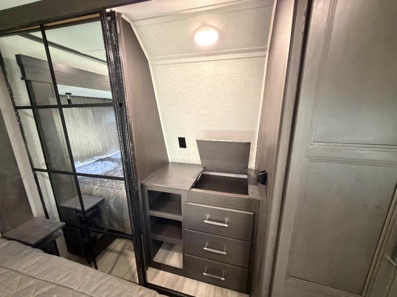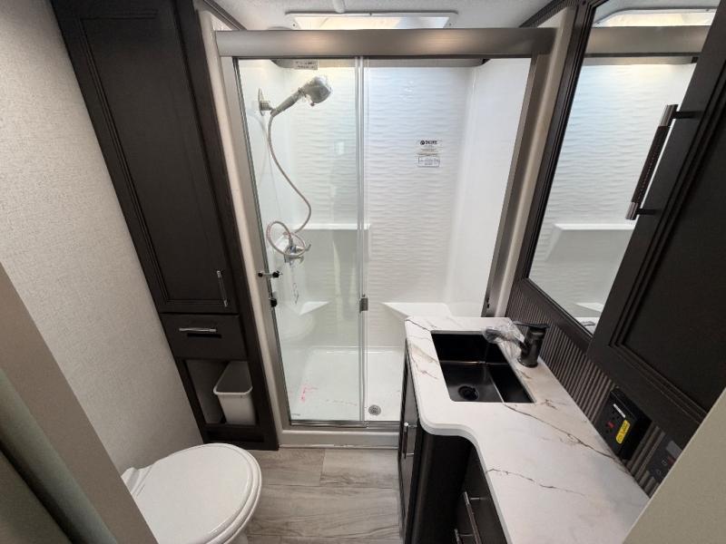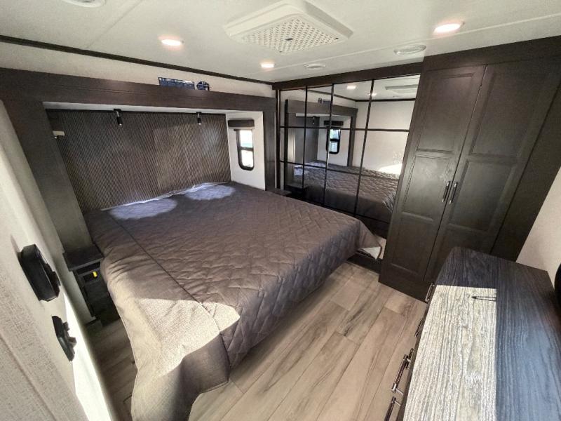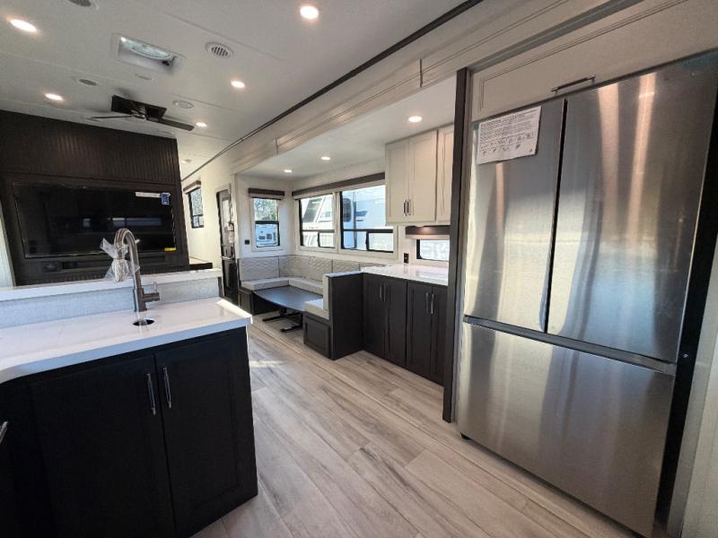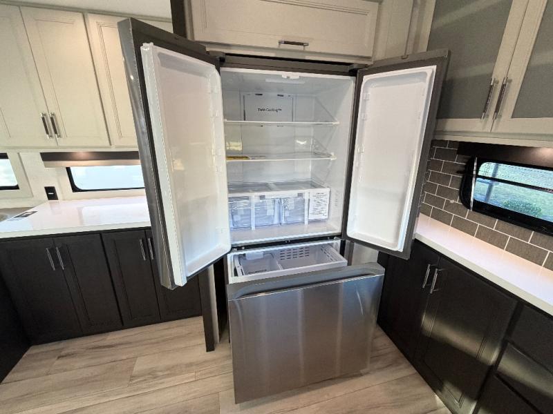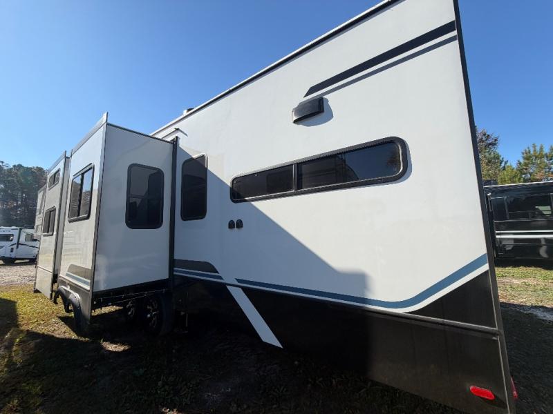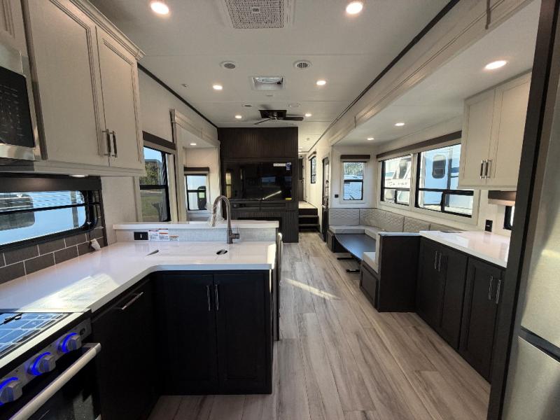 The Alpine Avalanche Edition 379MB delivers ultimate flexibility with a private mid-bunk room, expansive rear kitchen, and a spacious living area perfect for families or full-time RVers. With SolarFlex Protect, two A/C units, and a residential refrigerator, this luxury fifth wheel is built for all-season comfort and modern convenience.