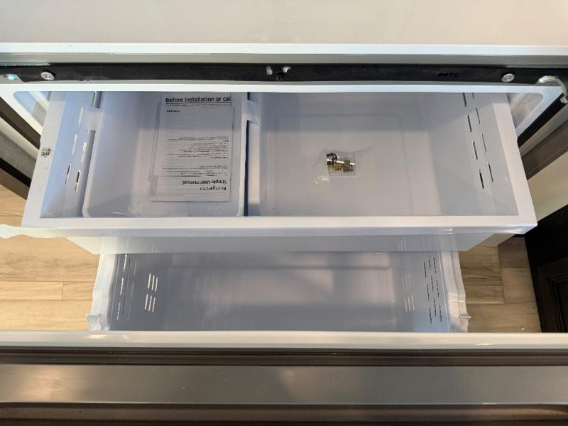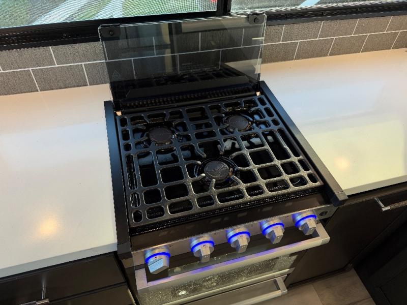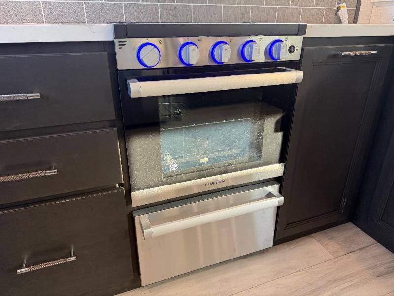 - Rear kitchen with wrap-around counters, Furrion appliances, and pantry