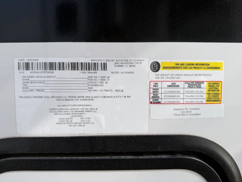 New 2026 Keystone RV Avalanche 379MB Fifth Wheel