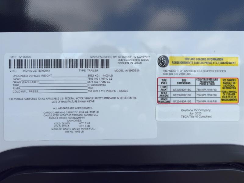 New 2026 Keystone RV Avalanche 390DS Fifth Wheel