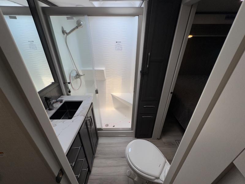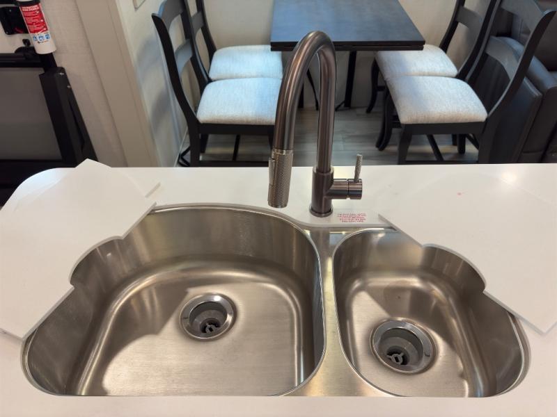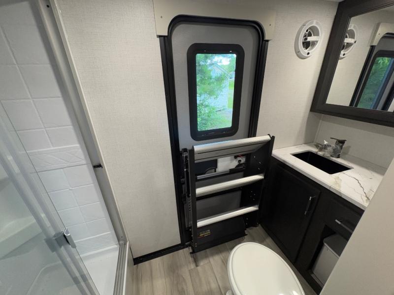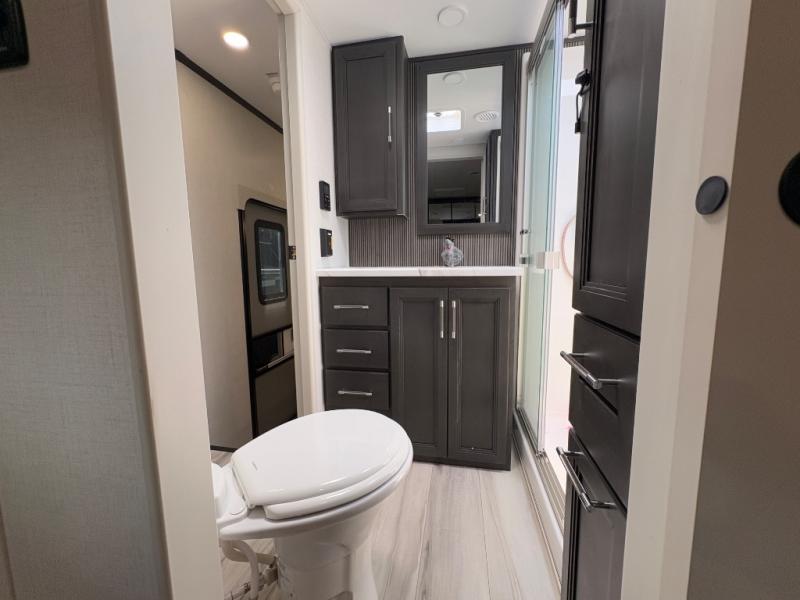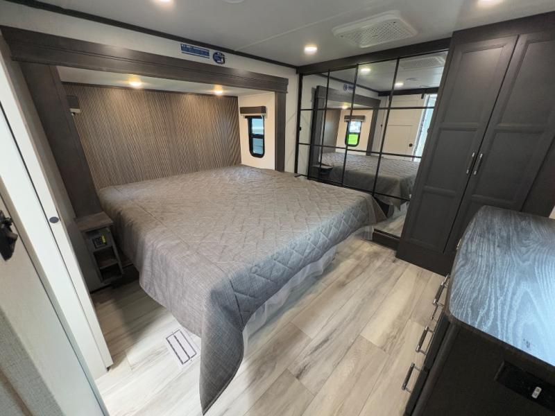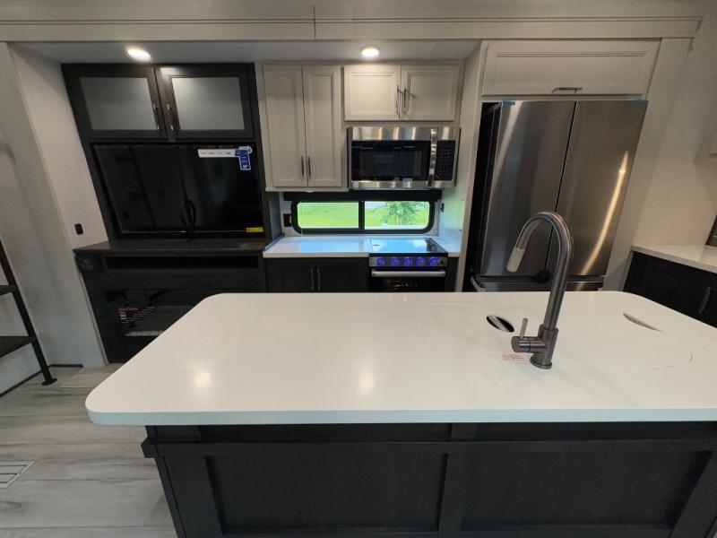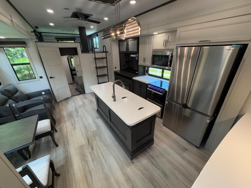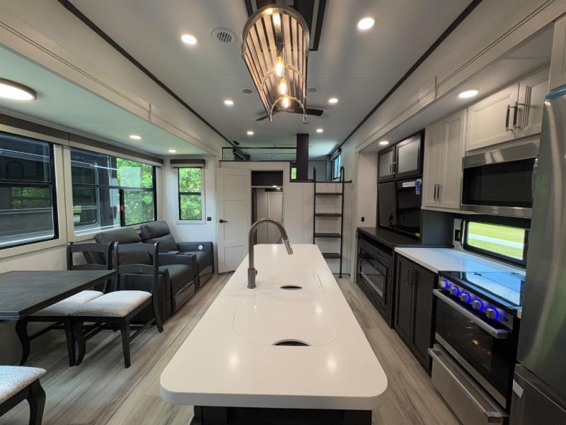 The Keystone Alpine Avalanche Edition 390DS fifth wheel delivers unmatched space, comfort, and luxury for families, multi-couple trips, or extended RV adventures. With two private bedrooms—a front master with king bed slide and a second bedroom with queen bed slide—and a loft sleeping area for three, this fifth wheel can accommodate up to eight guests. Two full bathrooms, including a rear bath with its own entry door, provide convenience and privacy for everyone on board.