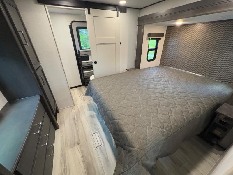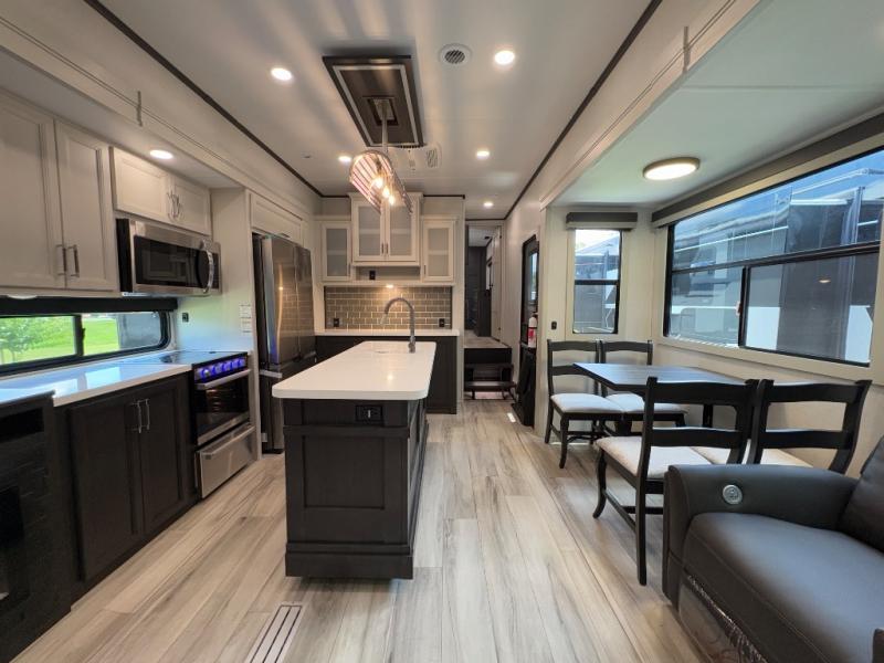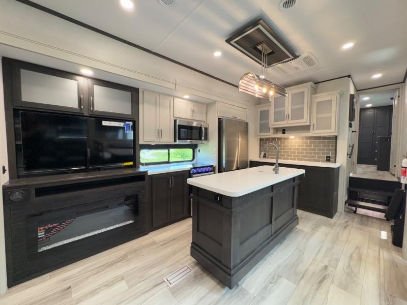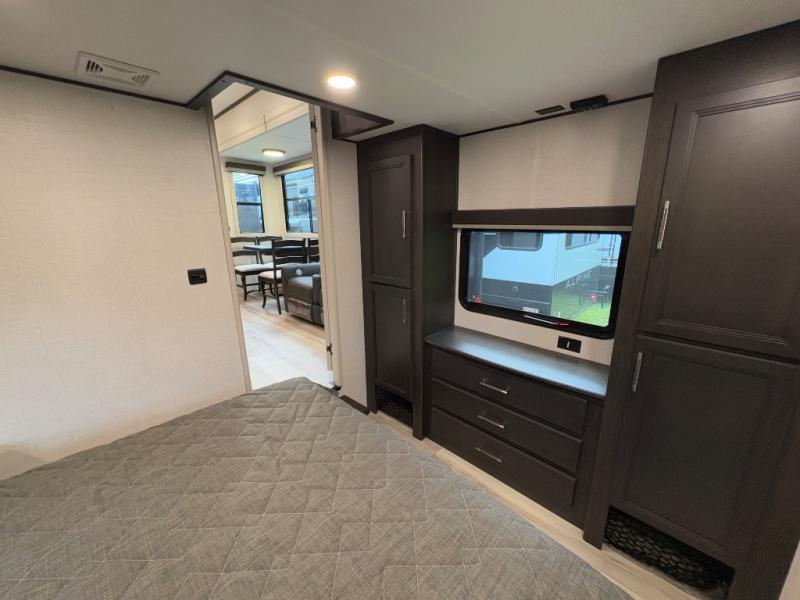 The Keystone Alpine Avalanche Edition 390DS combines luxury, flexibility, and all-season reliability in a fifth wheel built for families and extended adventures. Whether hosting movie nights, holiday dinners, or off-grid camping trips, this three A/C, dual-bedroom fifth wheel provides comfort and convenience wherever the road takes you.