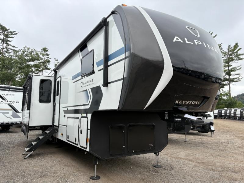 With any Keystone luxury Alpine Avalanche Edition fifth wheel, you will experience wide-body construction that allows you to stretch out and stay awhile during any season thanks to the Polar Pack All Season Protection that includes a heated and enclosed underbelly, an Astro foil reflective layer on the roof, front and rear walls, and two static attic vents, plus more! The interior offers hardwood slide out fascia with wood accents, designer upholstered window valances with custom wood window frame, plus your choice of modern interior design. There are many more Keystone exclusives, like the Tru-Fit slide construction, the in-floor heating ducts, KeyTV™, and much more to bring you a full-packed, luxury fifth wheel!
