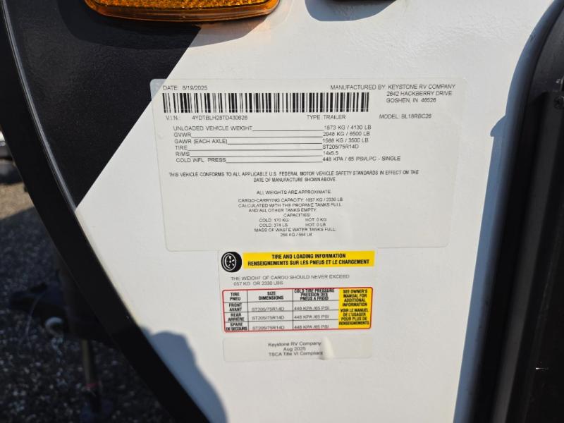 New 2026 Keystone RV Bullet 18RBC Travel Trailer