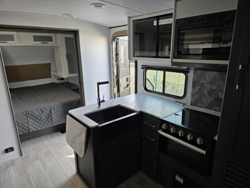 The Bullet Crossfire by Keystone are the perfect lightweight travel travel for rookie campers to seasoned RVers! Each one is built with a one-piece polypropylene underbelly, a fully walkable roof, and a high impact thermoset resin painted front cap for added durability. There is also a Dexter Torsion axle rubber ride suspension and Goodyear Endurance tires for a smooth tow plus a power tongue jack and power stabilizer jacks for easy set up. The interior will have you feeling right at home with deluxe night shades, updated Tranquil Timber decor, residential Beauflor vinyl flooring, and seamless kitchen countertops.