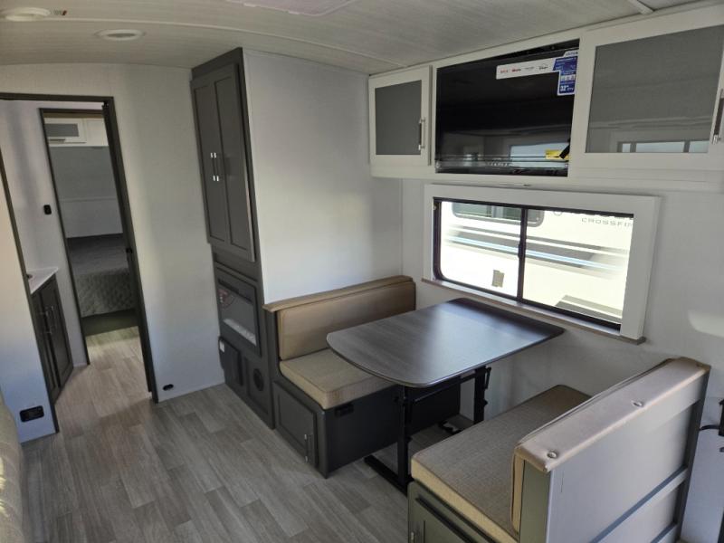 The Bullet Crossfire by Keystone are the perfect lightweight travel travel for rookie campers to seasoned RVers! Each one is built with a one-piece polypropylene underbelly, a fully walkable roof, and a high impact thermoset resin painted front cap for added durability. There is also a Dexter Torsion axle rubber ride suspension and Goodyear Endurance tires for a smooth tow plus a power tongue jack and power stabilizer jacks for easy set up. The interior will have you feeling right at home with deluxe night shades, updated Tranquil Timber decor, residential Beauflor vinyl flooring, and seamless kitchen countertops.