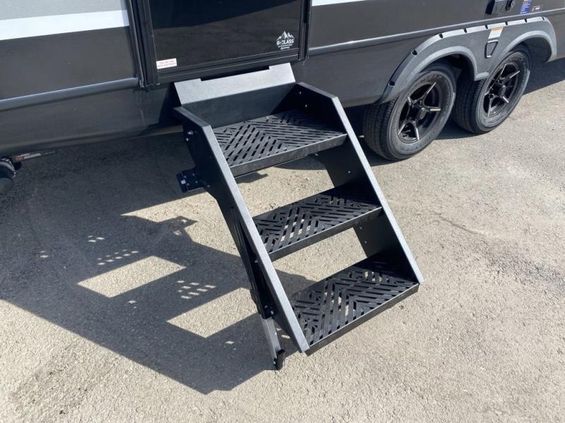 It won't be hard to find comfort in this dual entry travel trailer for six! You can enter in through the front private bedroom or the rear living area, and there is a large slide out for added space to move about. Spend your evenings on the tri-fold sofa across from the TV, around the U-shaped dinette, or outside under the 19' awning. You might even like to add the optional luxury style cinema theater seating in place of the sofa for more comfort! The walk-through bath will provide easy access for everyone, and the front master bedroom is sure to feel just like home with its queen bed and dual wardrobes!