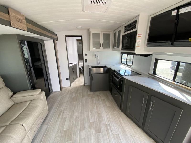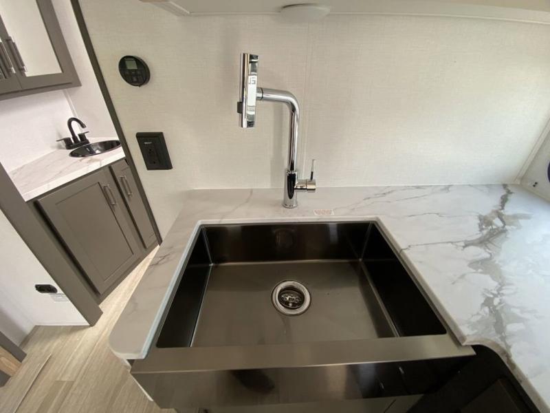The Bullet Crossfire by Keystone are the perfect lightweight travel travel for rookie campers to seasoned RVers! Each one is built with a one-piece polypropylene underbelly, a fully walkable roof, and a high impact thermoset resin painted front cap for added durability. There is also a Dexter Torsion axle rubber ride suspension and Goodyear Endurance tires for a smooth tow plus a power tongue jack and power stabilizer jacks for easy set up. The interior will have you feeling right at home with deluxe night shades, updated Tranquil Timber decor, residential Beauflor vinyl flooring, and seamless kitchen countertops.