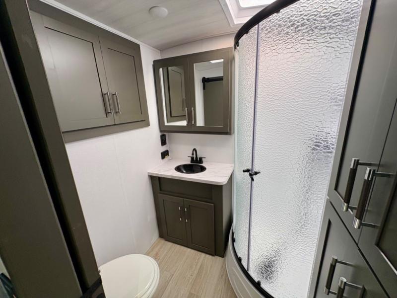 The Bullet Crossfire by Keystone are the perfect lightweight travel travel for rookie campers to seasoned RVers! Each one is built with a one-piece polypropylene underbelly, a fully walkable roof, and a high impact thermoset resin painted front cap for added durability. There is also a Dexter Torsion axle rubber ride suspension and Goodyear Endurance tires for a smooth tow plus a power tongue jack and power stabilizer jacks for easy set up. The interior will have you feeling right at home with deluxe night shades, updated Tranquil Timber decor, residential Beauflor vinyl flooring, and seamless kitchen countertops.
