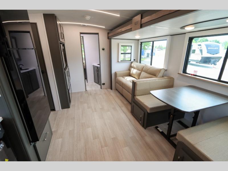 With any Keystone Bullet travel trailer you can experience lightweight camping with style! The interior design and functionality will impress you, along with the durable construction materials. Each is built with Hyper Deck RV flooring that is stronger, lighter and more resilient than traditional wood laminated flooring. The Girard tankless water heater is a feature you won't want to camp without, and the Blade high-performance air flow system will help keep you comfortable all summer long. It will be so easy to enjoy life at the campground since each model includes residential durable Beauflor vinyl flooring, deluxe night shades, solid surface seamless kitchen countertops, and many more comforts!