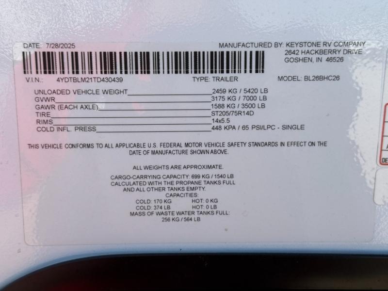 2026 26BHC Specifications