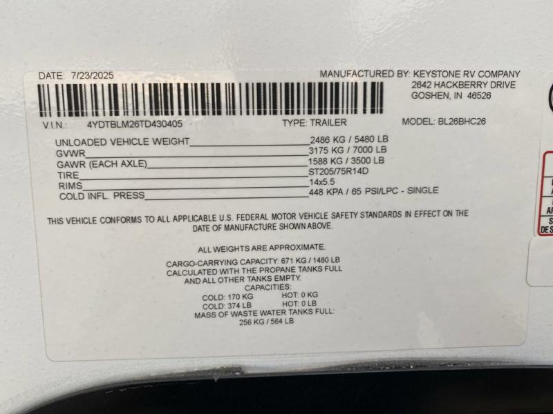 New 2026 Keystone RV Bullet 26BHC Travel Trailer