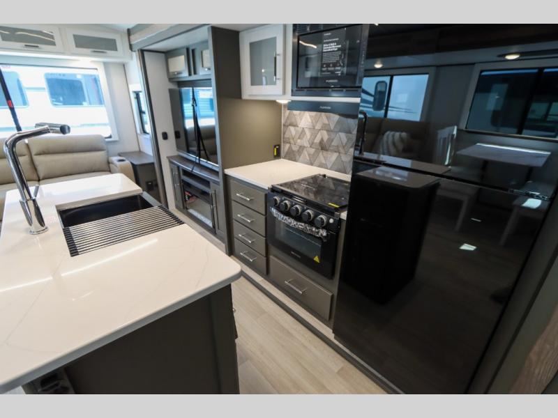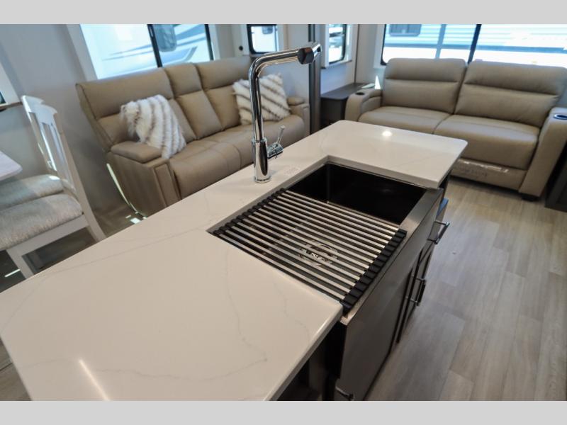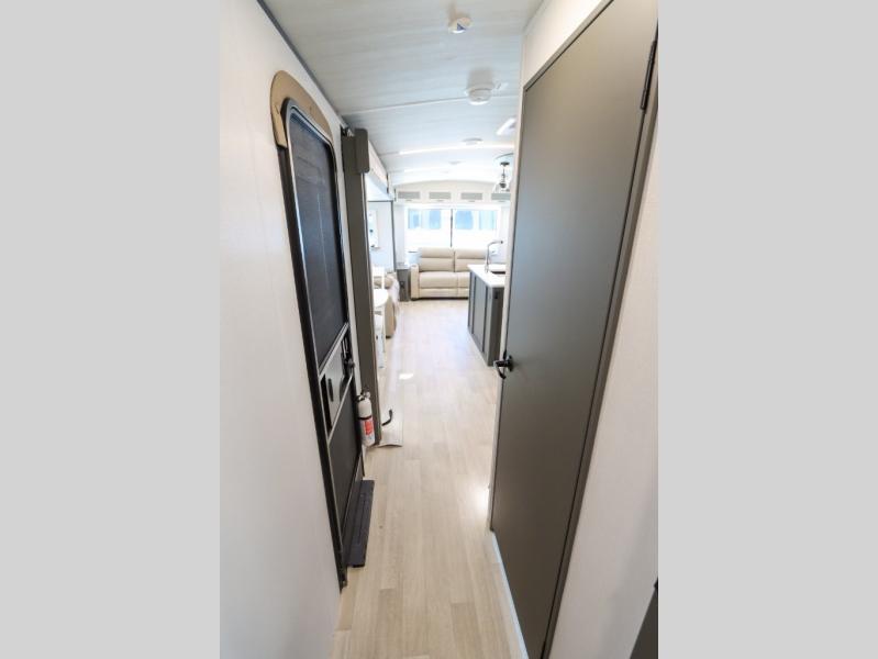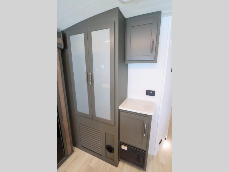 You'll be camping in style with this trailer in tow. You will wake up each morning on a king bed slide out, and there is a closet up front to easily get dressed. A wardrobe with TV prep is also found in the bedroom, along with washer/dryer prep to make wash day easier than ever. If you had guests stay over, they'll be waking up on the tri-fold sofa in the rear living area. Once everyone is ready for the day, you can make breakfast on the three burner cooktop or in the microwave oven, and there is a 10 cu. ft. refrigerator where milk and eggs can go back in. This Bullet kitchen also includes a kitchen island, a pantry, plus a hutch for ample storage space!
