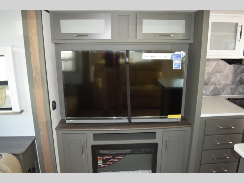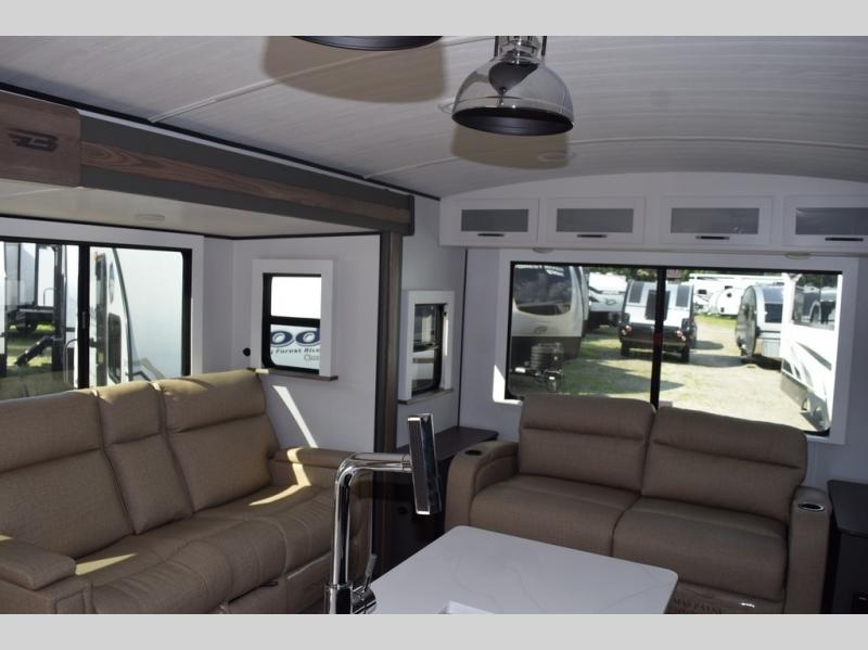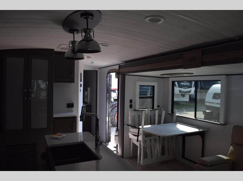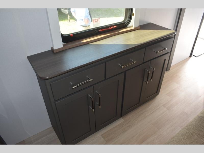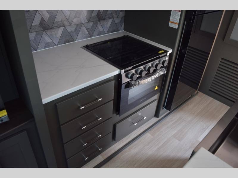 You'll be camping in style with this trailer in tow. You will wake up each morning on a king bed slide out, and there is a closet up front to easily get dressed. A wardrobe with TV prep is also found in the bedroom, along with washer/dryer prep to make wash day easier than ever. If you had guests stay over, they'll be waking up on the tri-fold sofa in the rear living area. Once everyone is ready for the day, you can make breakfast on the three burner cooktop or in the microwave oven, and there is a 10 cu. ft. refrigerator where milk and eggs can go back in. This Bullet kitchen also includes a kitchen island, a pantry, plus a hutch for ample storage space!