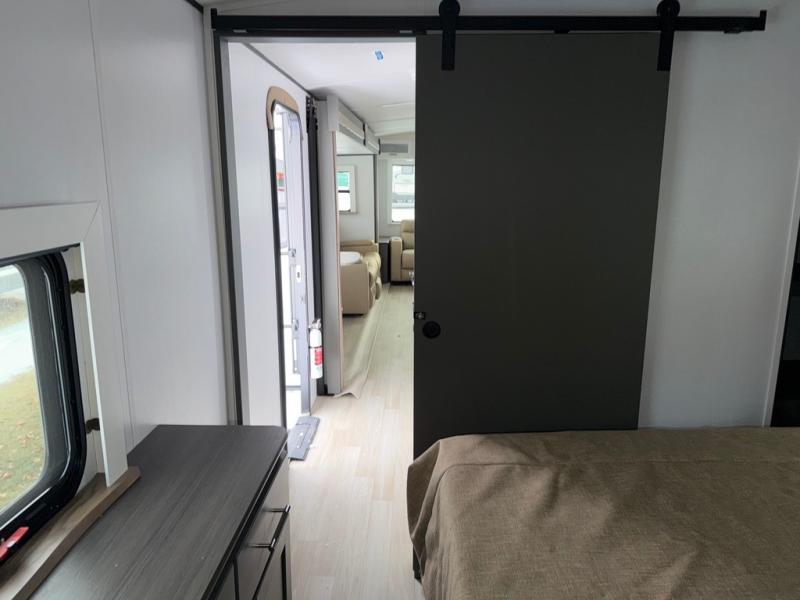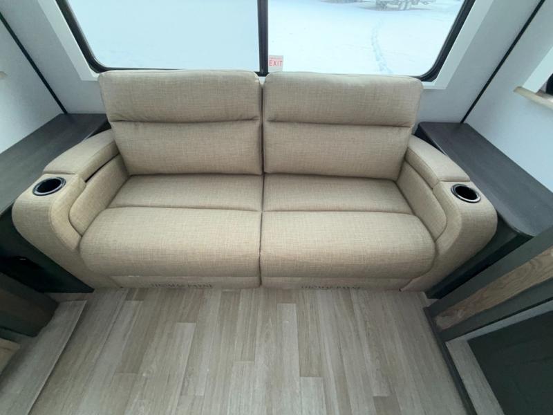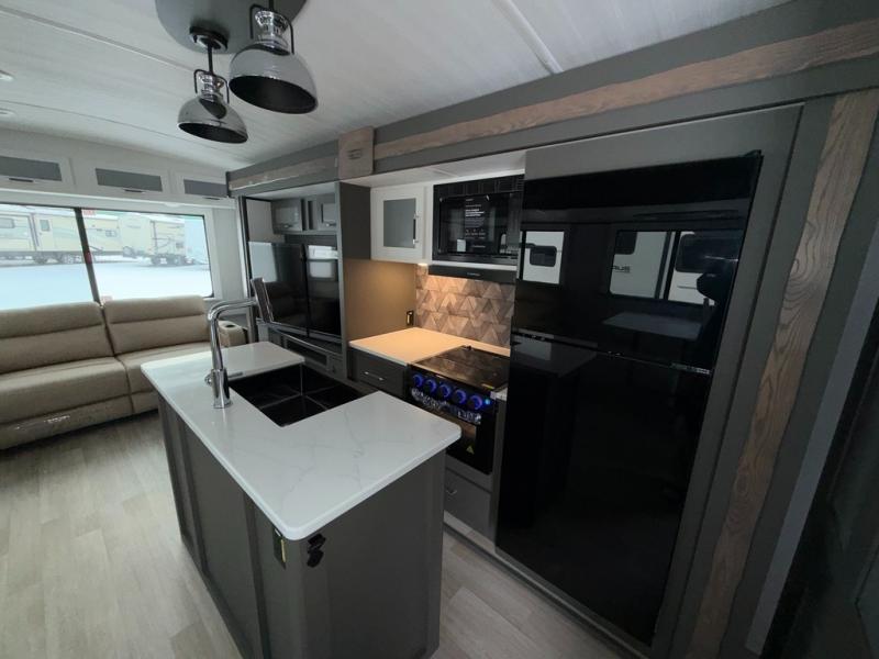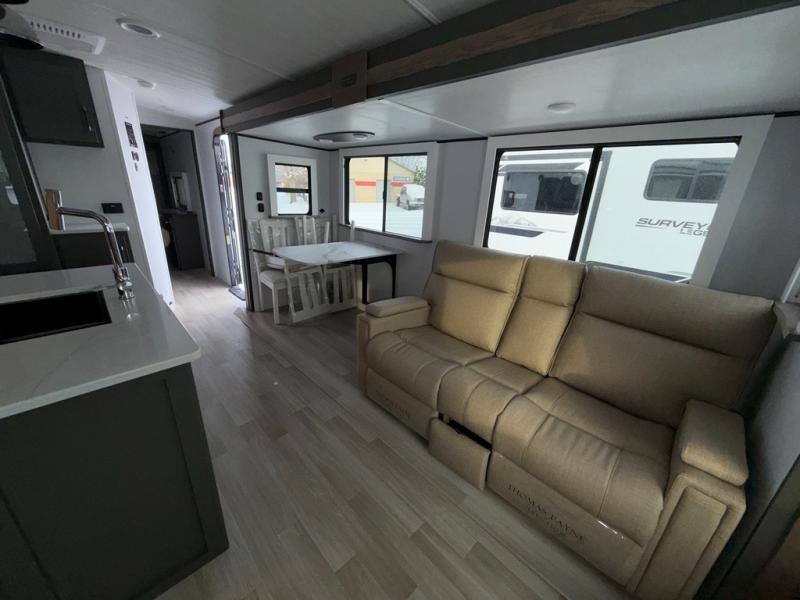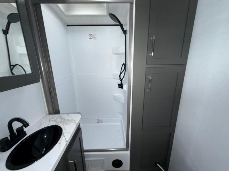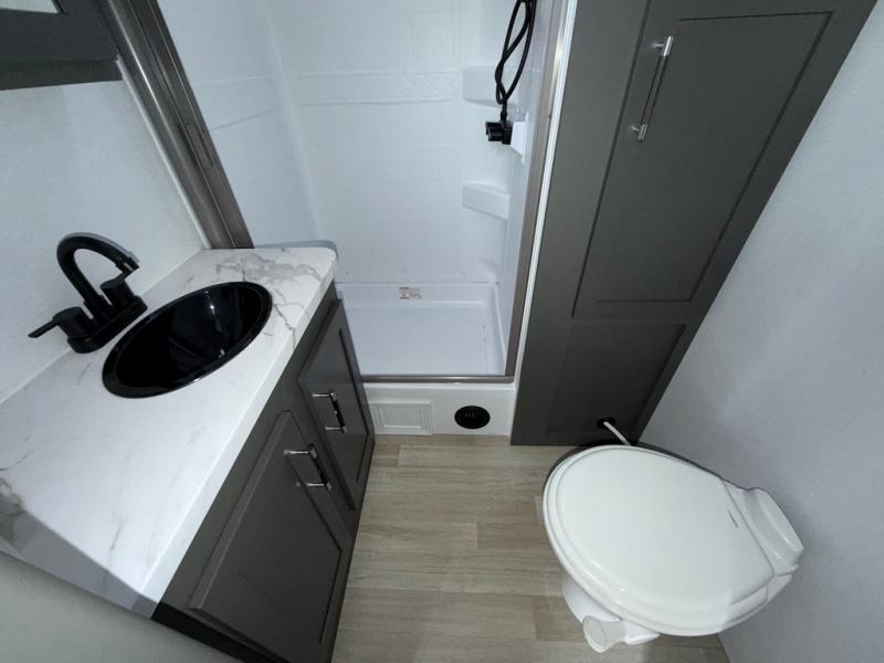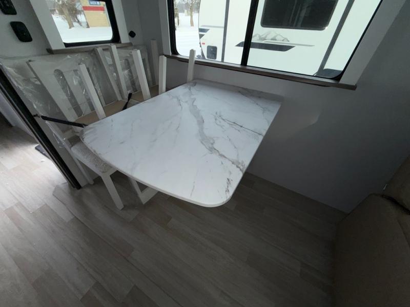 You'll be camping in style with this trailer in tow. You will wake up each morning on a king bed slide out, and there is a closet up front to easily get dressed. A wardrobe with TV prep is also found in the bedroom, along with washer/dryer prep to make wash day easier than ever. If you had guests stay over, they'll be waking up on the tri-fold sofa in the rear living area. Once everyone is ready for the day, you can make breakfast on the three burner cooktop or in the microwave oven, and there is a 10 cu. ft. refrigerator where milk and eggs can go back in. This Bullet kitchen also includes a kitchen island, a pantry, plus a hutch for ample storage space!
