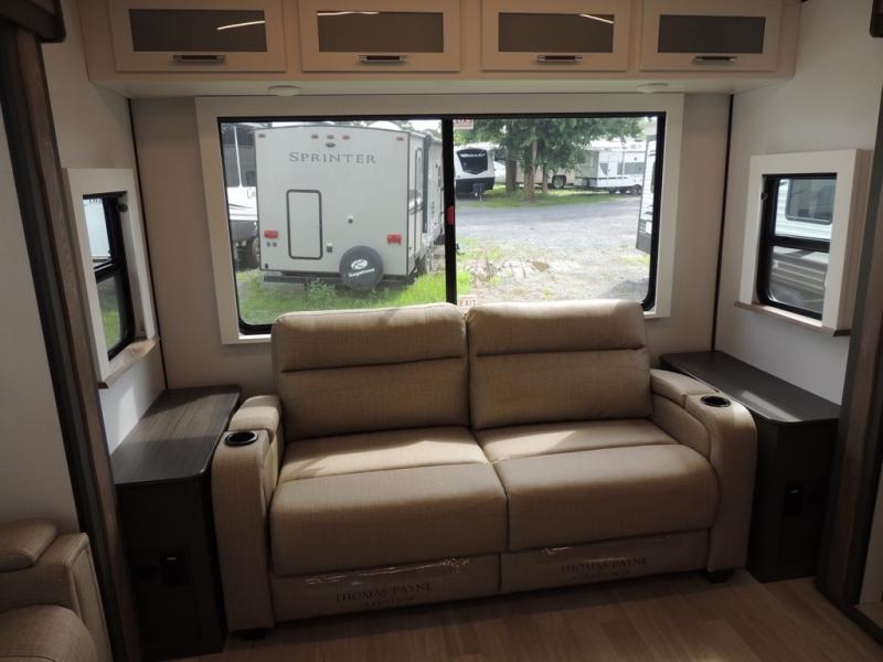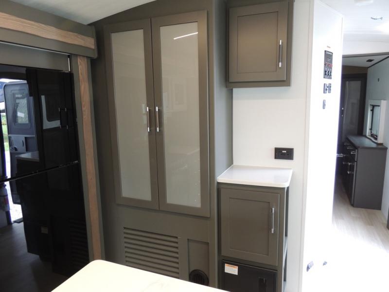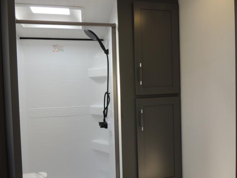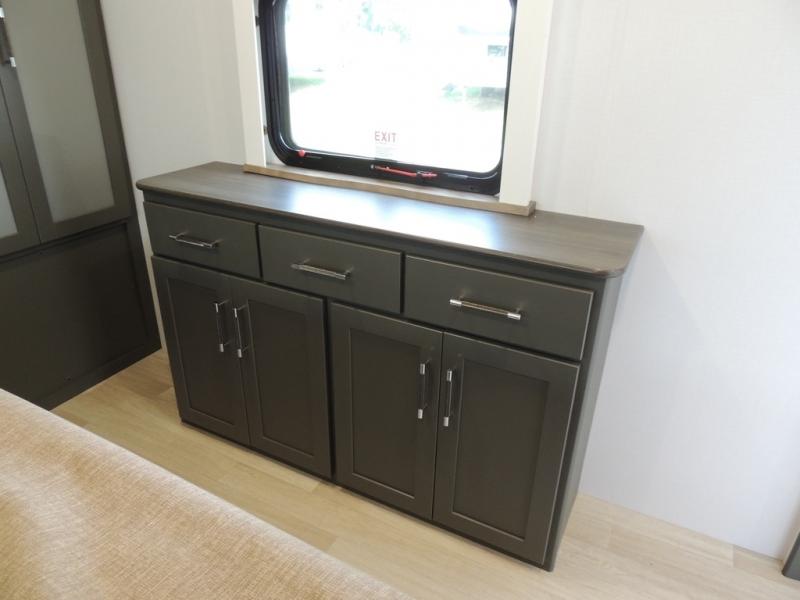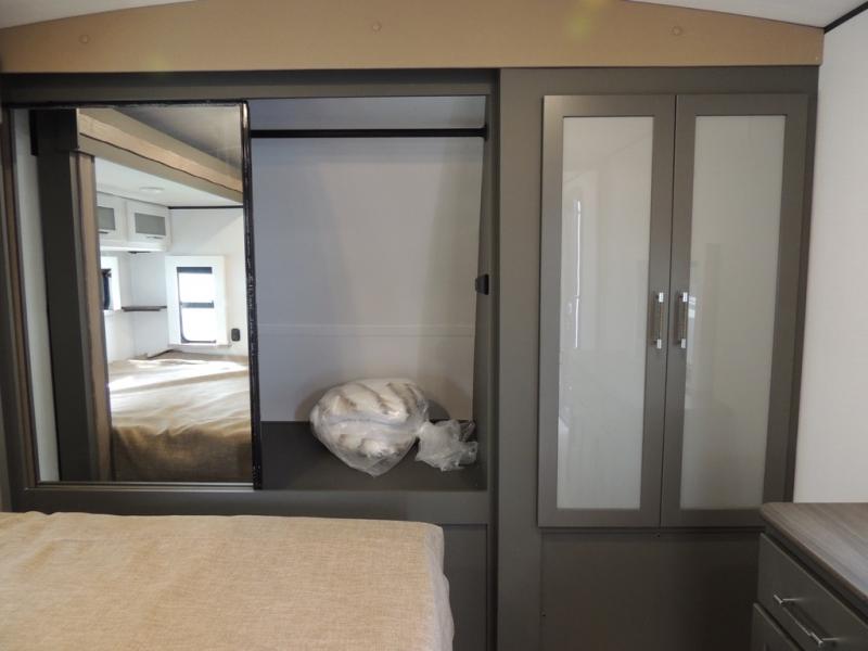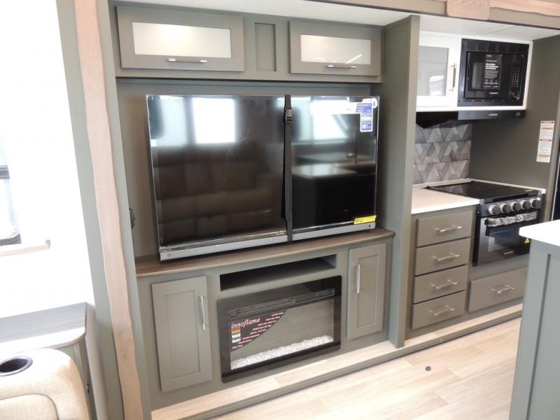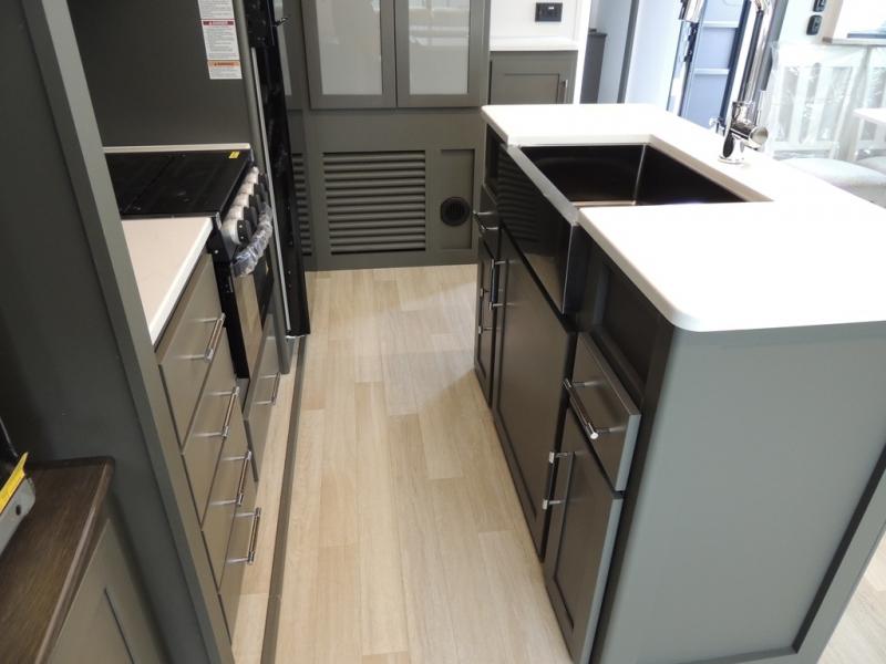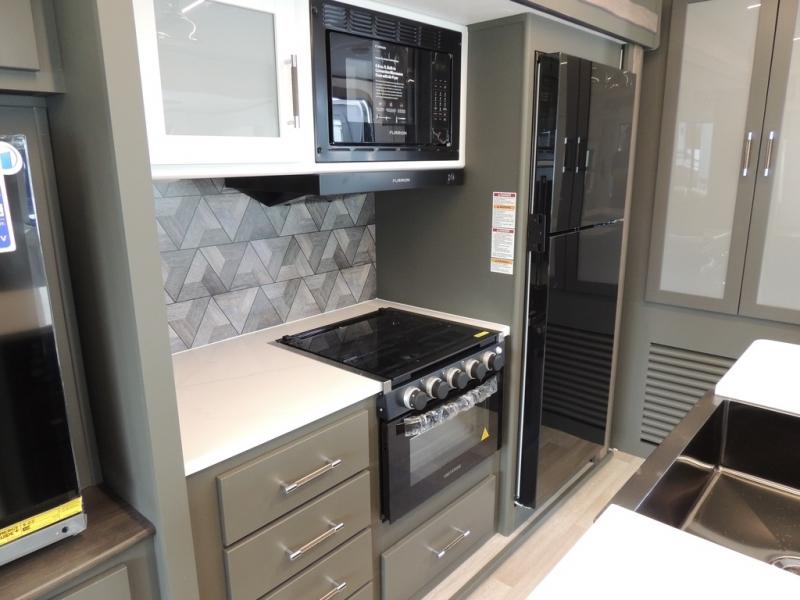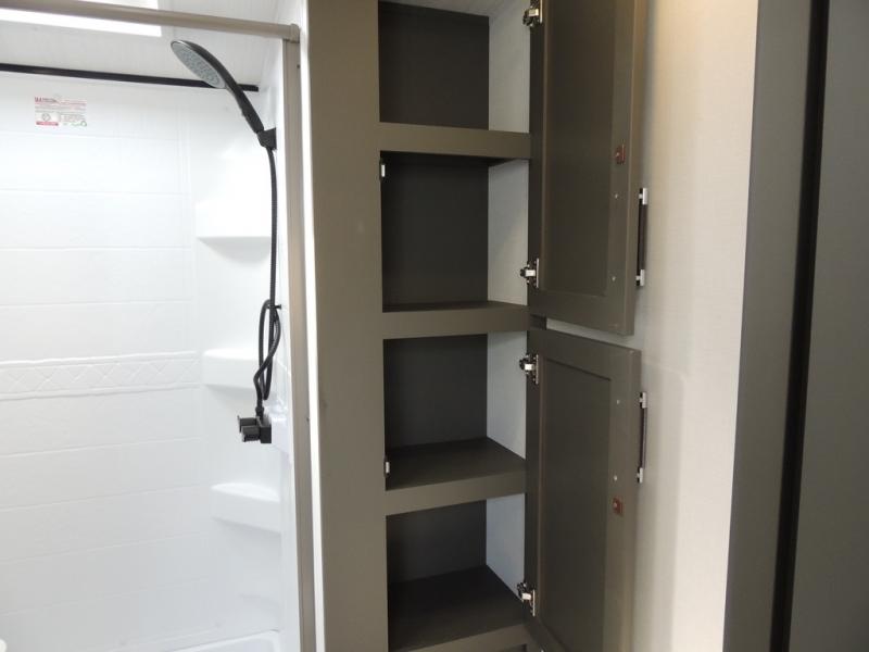 You'll be camping in style with this trailer in tow. You will wake up each morning on a king bed slide out, and there is a closet up front to easily get dressed. A wardrobe with TV prep is also found in the bedroom, along with washer/dryer prep to make wash day easier than ever. If you had guests stay over, they'll be waking up on the tri-fold sofa in the rear living area. Once everyone is ready for the day, you can make breakfast on the three burner cooktop or in the microwave oven, and there is a 10 cu. ft. refrigerator where milk and eggs can go back in. This Bullet kitchen also includes a kitchen island, a pantry, plus a hutch for ample storage space!