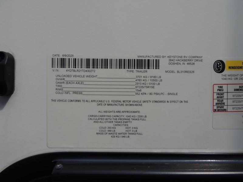New 2026 Keystone RV Bullet 310RES Travel Trailer