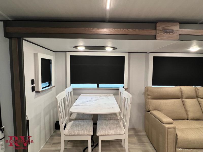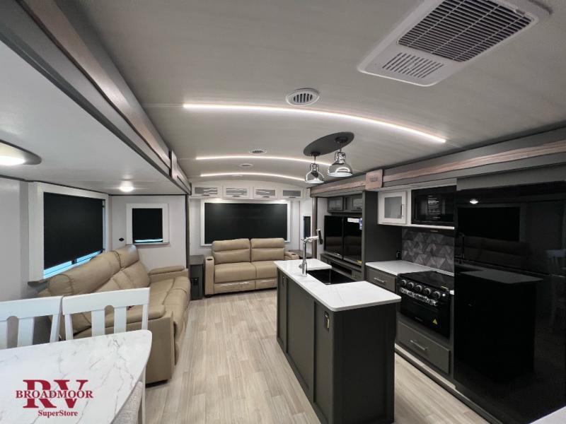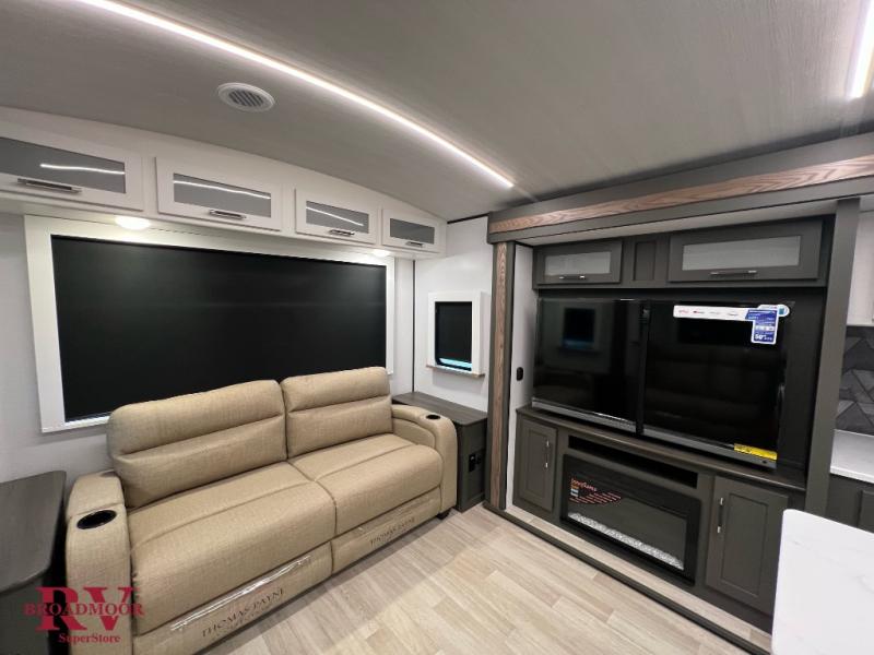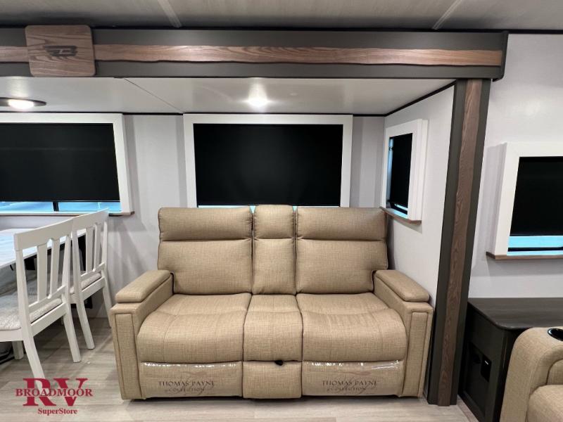 Optional Equipment Installed On This Unit: Upgraded Equipment Package, Theater Seating, 15K AC, 50AMP Service, Solar Flex Protect, 2nd 13.5 AC, Free Standing Dinette and Chairs