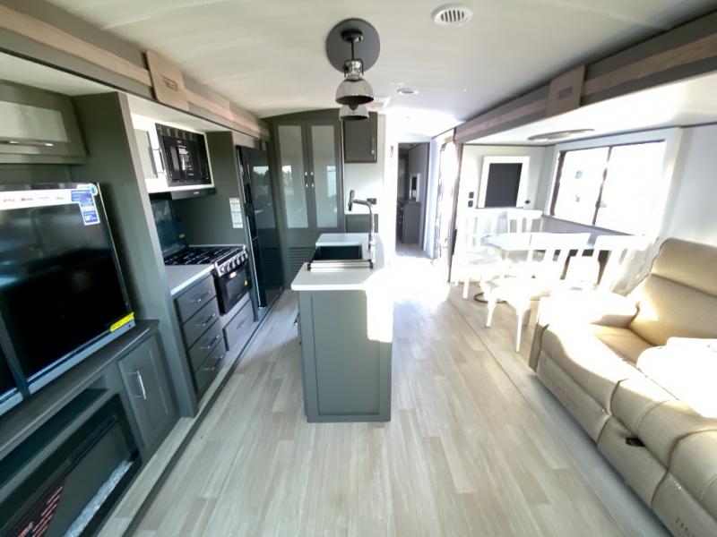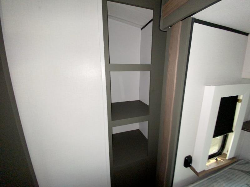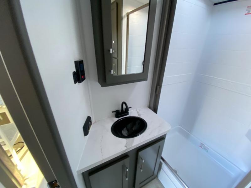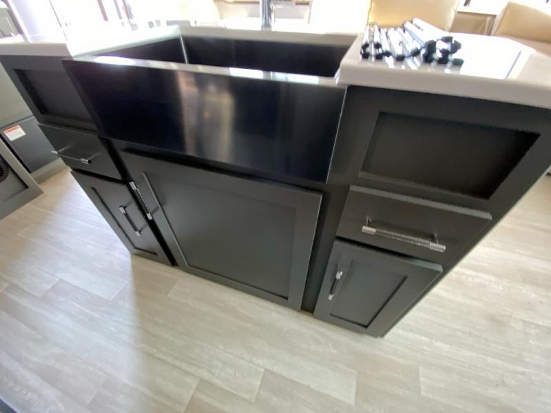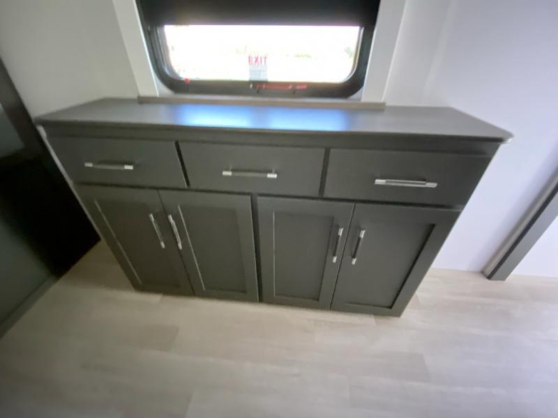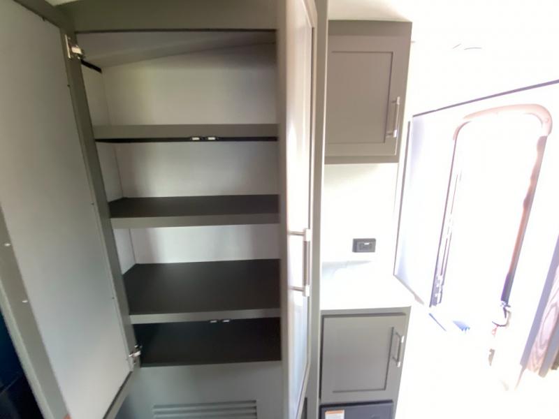 You'll be camping in style with this trailer in tow. You will wake up each morning on a king bed slide out, and there is a closet up front to easily get dressed. A wardrobe with TV prep is also found in the bedroom, along with washer/dryer prep to make wash day easier than ever. If you had guests stay over, they'll be waking up on the tri-fold sofa in the rear living area. Once everyone is ready for the day, you can make breakfast on the three burner cooktop or in the microwave oven, and there is a 10 cu. ft. refrigerator where milk and eggs can go back in. This Bullet kitchen also includes a kitchen island, a pantry, plus a hutch for ample storage space!